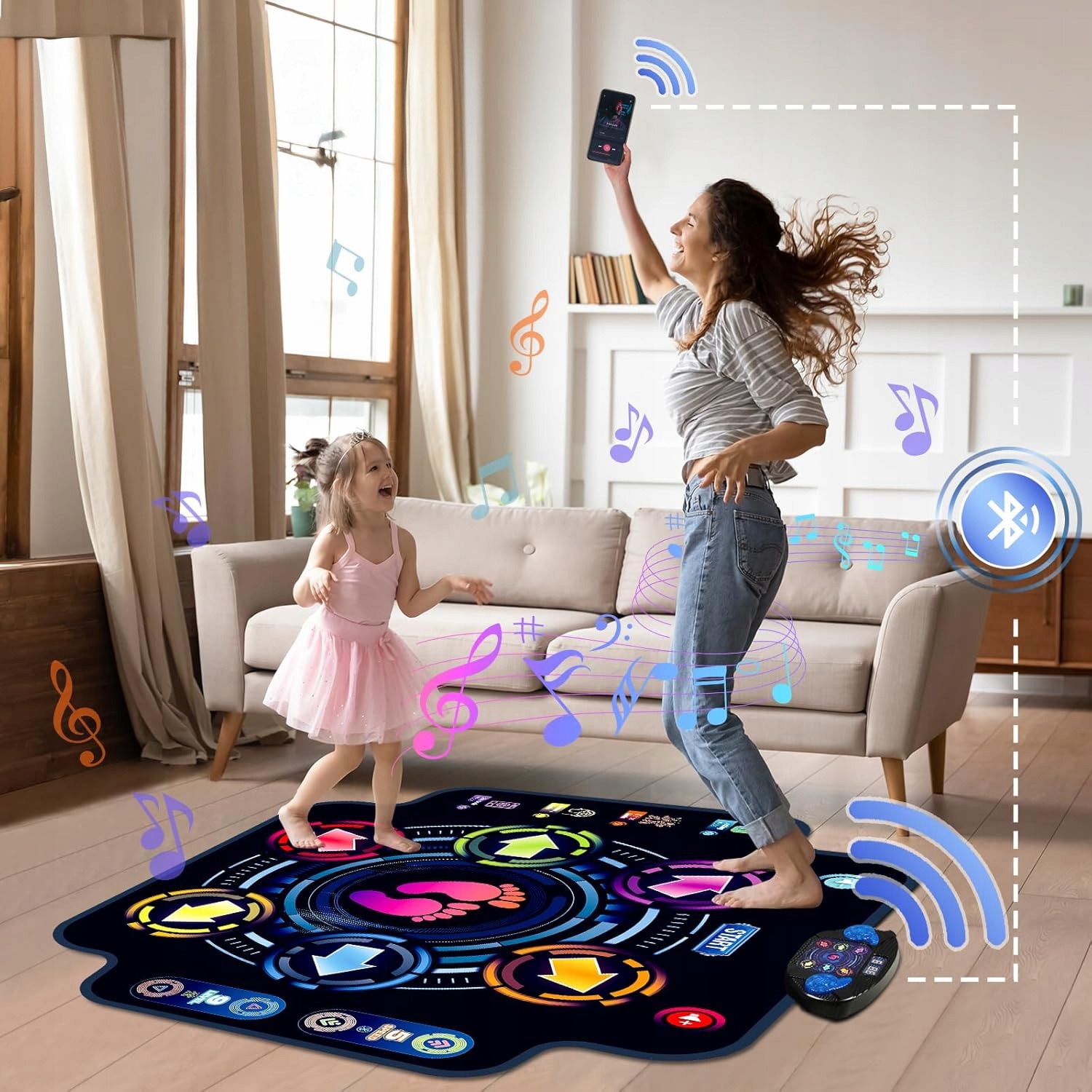 Хотите танцевать под свои песни? 🎶 Просто подключите коврик к телефону или другому устройству Bluetooth через беспроводное соединение и наслаждайтесь плейлистом! Встроенный регулятор громкости позволяет регулировать звук в соответствии с вашими предпочтениями.