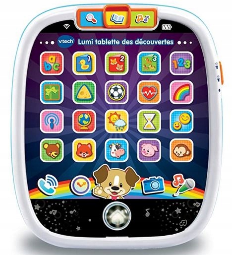 Lumi Tablet открывает для себя – от 9 до 36 месяцев первый планшет для игр ребенка, папы и мамы. 25 сенсорных кнопок, включая 20 индикаторов, для полного открытия: цифры от 1 до 10, фигуры, алфавит в песне, животные, узнайте, сколько времени вы проводите, слушая друга. Маленькая собачка сопровождает ребенка в его открытиях, рассказывает ему истории и подбадривает его. Кнопка «Домой» с подсветкой активирует веселые звуки и забавные фразы. 3 режима игры: открытие, обучение и музыка. 20 мелодий и 3 песни сопровождают ребенка в его открытиях. Регулятор громкости и автоматическое отключение.