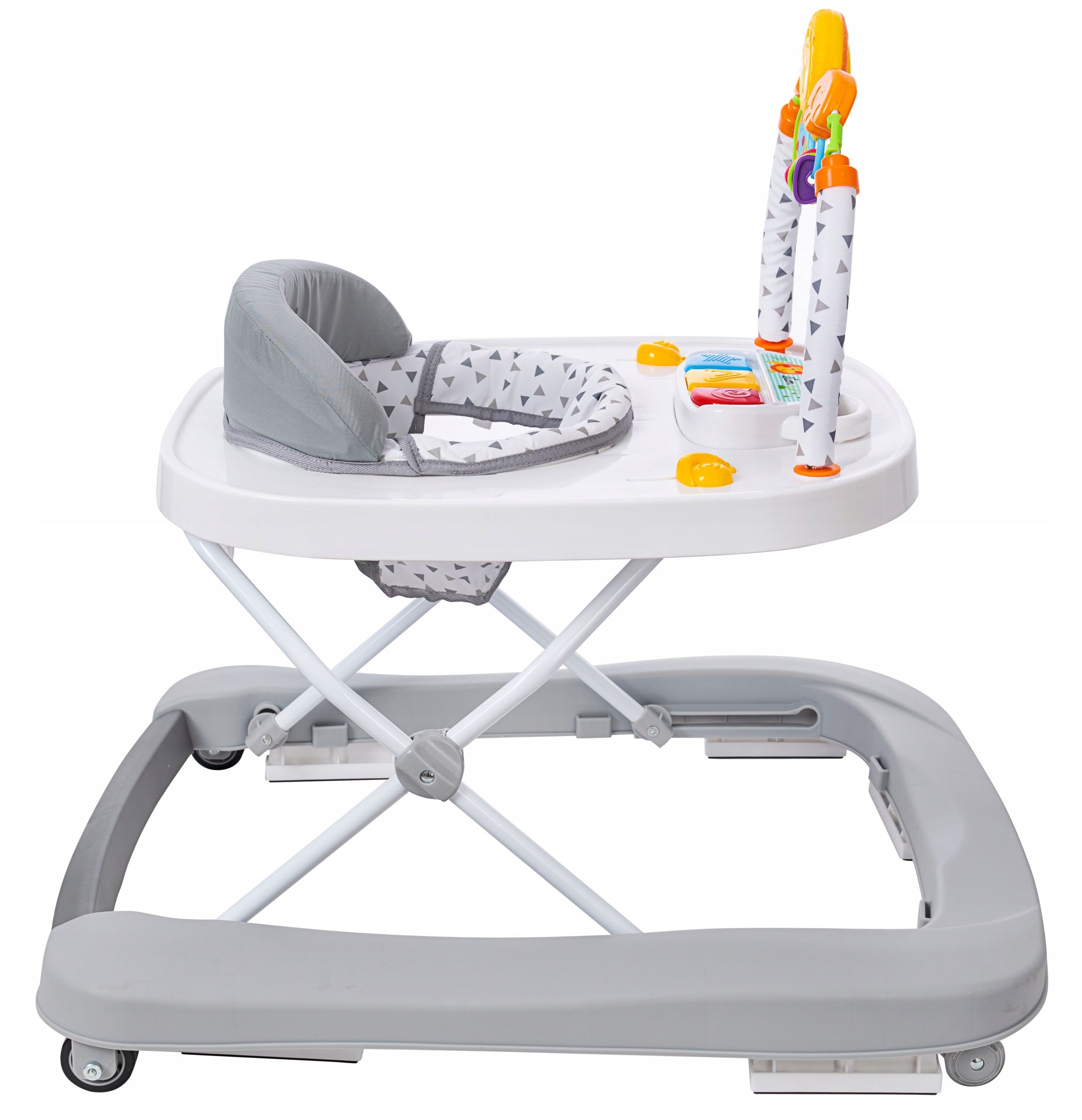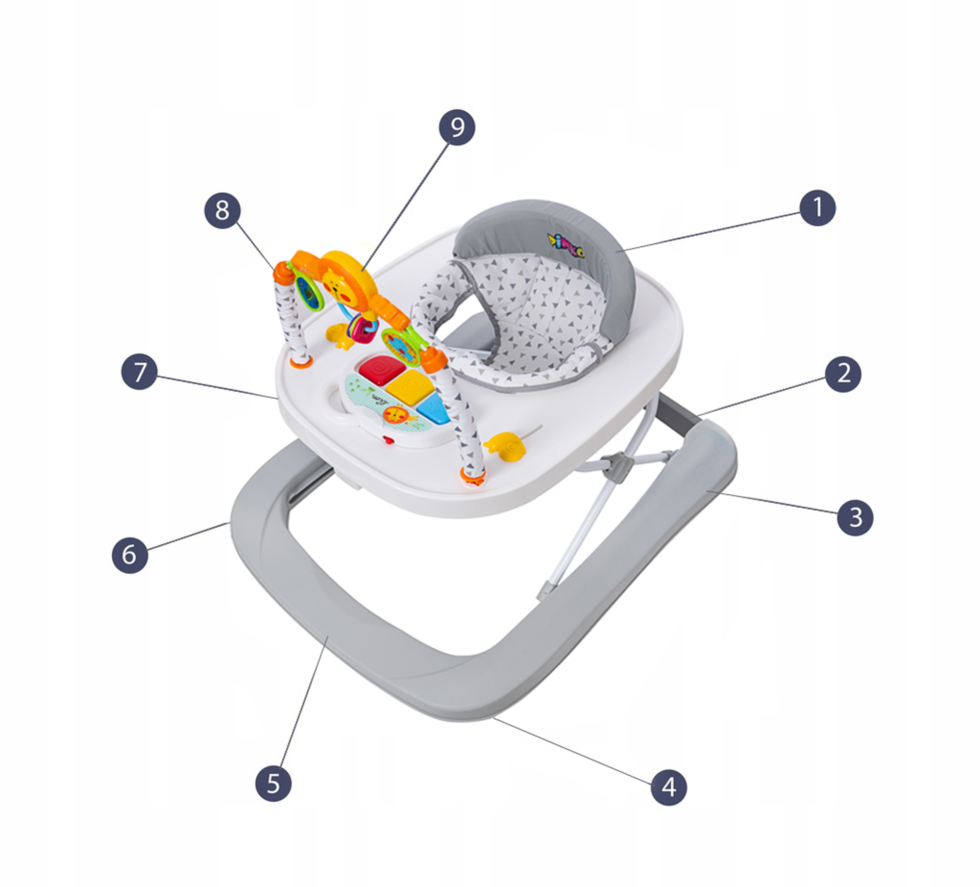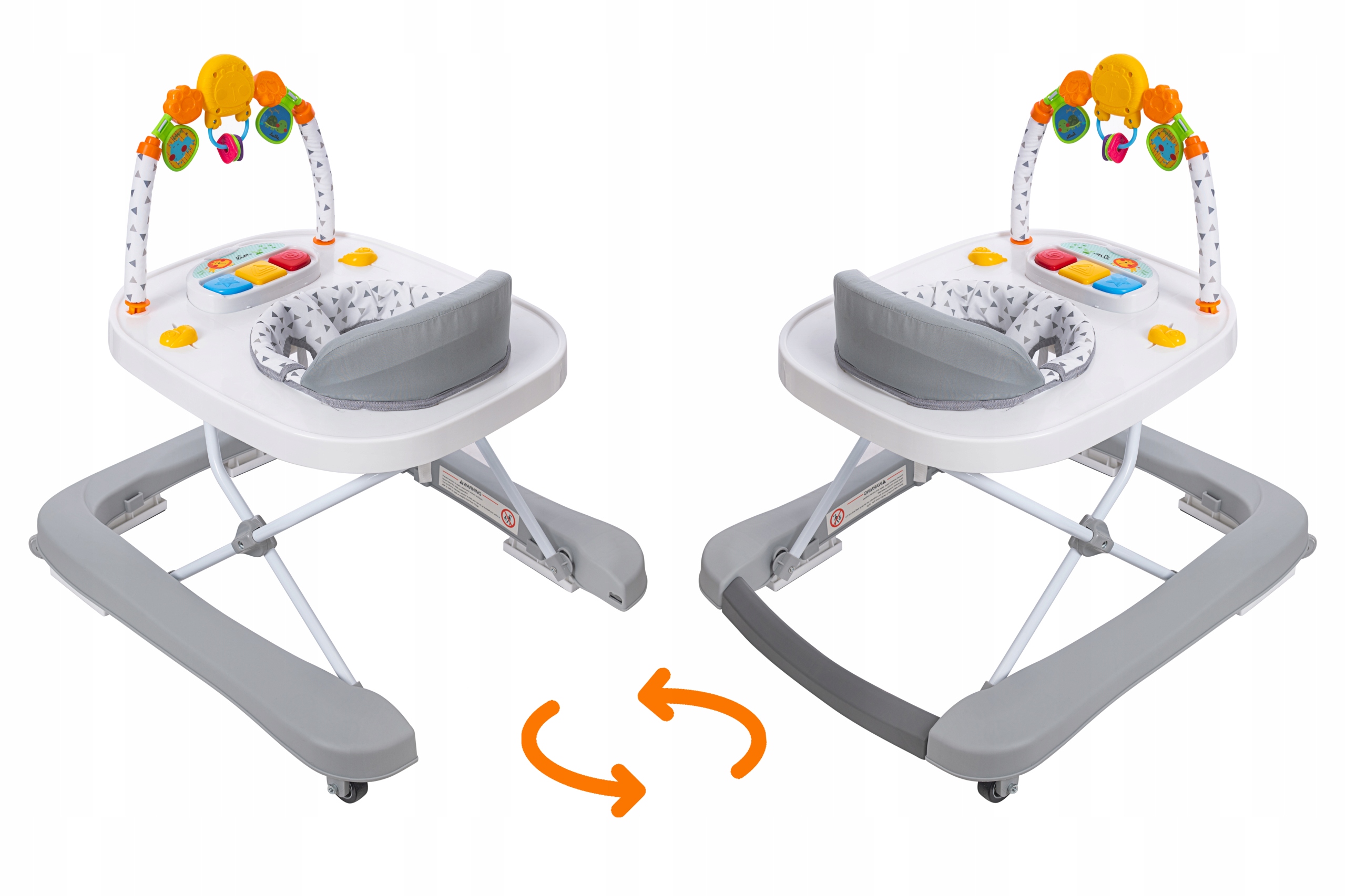 Вы можете легко превратить наш ходунок в толкатель - сняв перекладину, задние колеса также имеют блокировку, благодаря которой вы может регулировать скорость ходунков в соответствии с навыками ребенка.