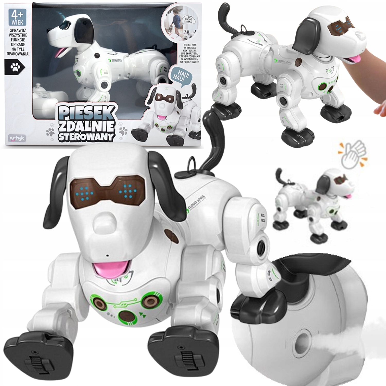 В комплект входит большой робот (21 см) в виде милой собачки, контроллер/пульт и красивая, большая упаковка. б> со стеклянным окном. Вся вещь идеальна для подарка! Дополнительным преимуществом является полностью польская упаковка, на которой вы найдете описание функций собачки.