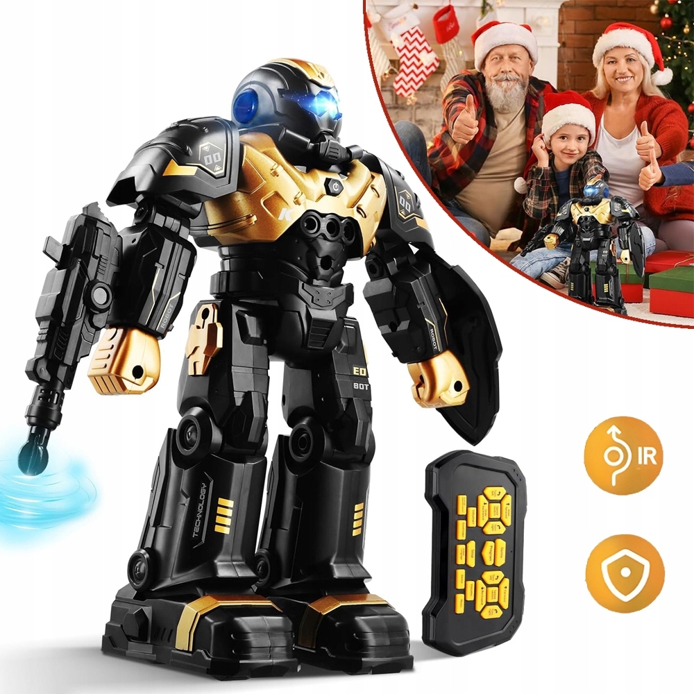 Робот с дистанционным управлением оснащен пультом дистанционного управления, щитом, пистолетом и шариками. Робот крупнее других роботов и имитирует звук пулемета. Поэтому, когда оба ребенка купят этого робота, они смогут устроить захватывающую битву роботов! У робота также есть светодиодные глаза, которые очень круты ночью, и детям очень понравится эта игрушка!