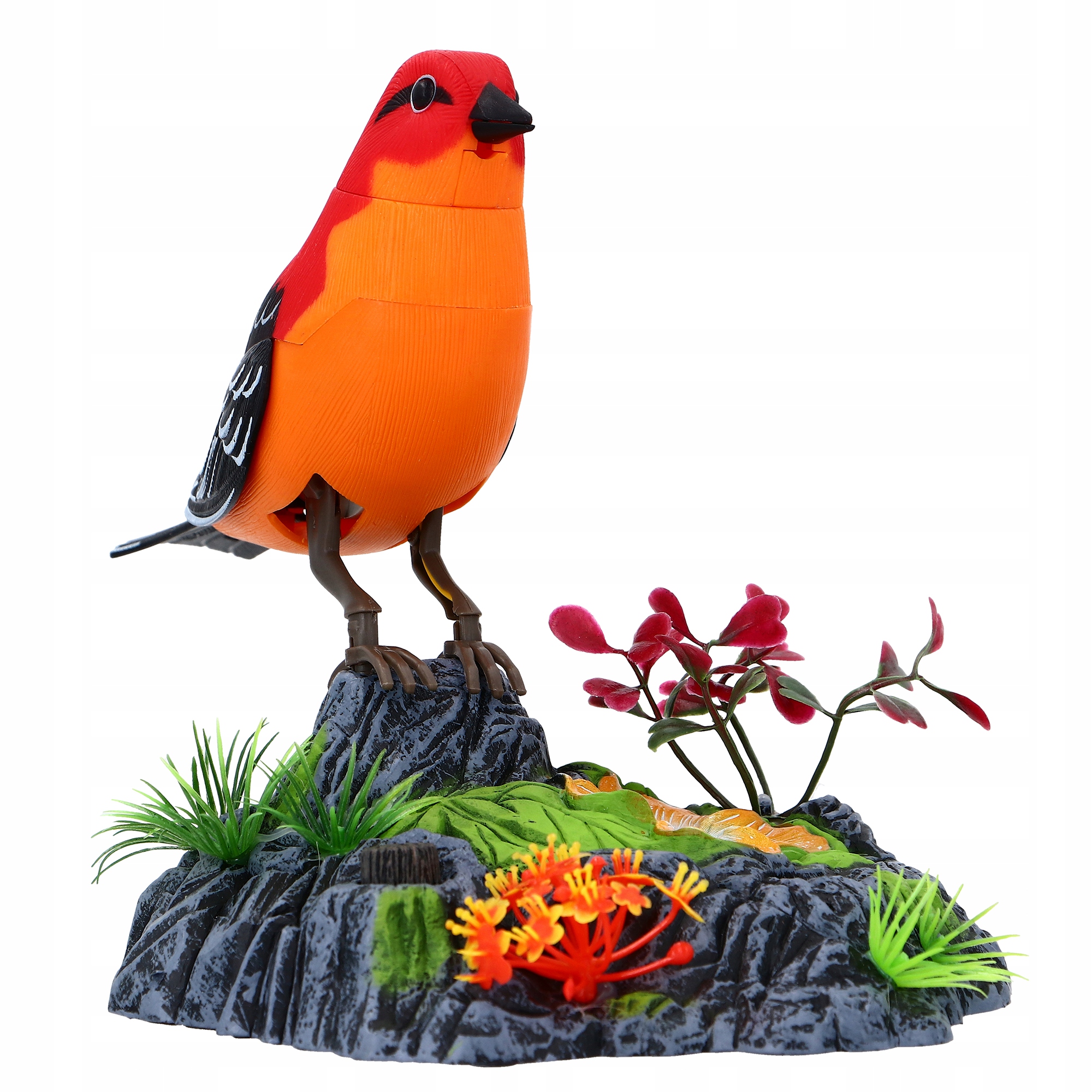 Птица имеет подвижные элементы, такие как клюв или хвост, и реагирует звуком – при нажатии на кнопку она начинает чирикать. . Интерактивная игрушка - звук также активируется в ответ на шум или прикосновение.
