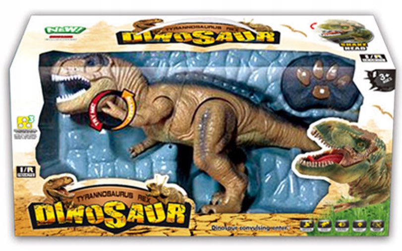 Динозавр управляется с помощью пульта -самостоятельно двигается вперед, открывает рот, двигает руками и головой.