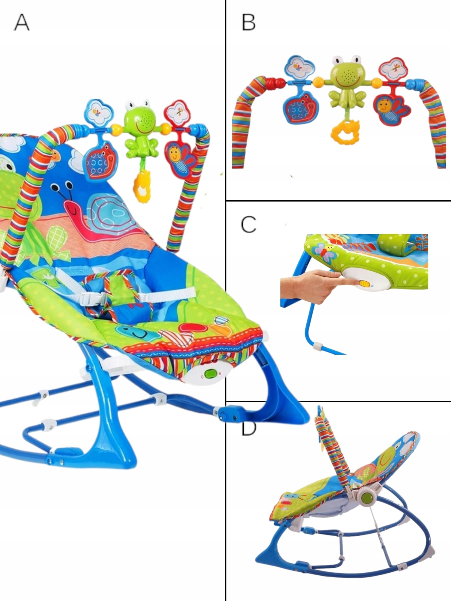 INTERAKTYWNY Leżaczek Bujaczek Melodie Wibracje FOTELIK do karmienia ŻABKA