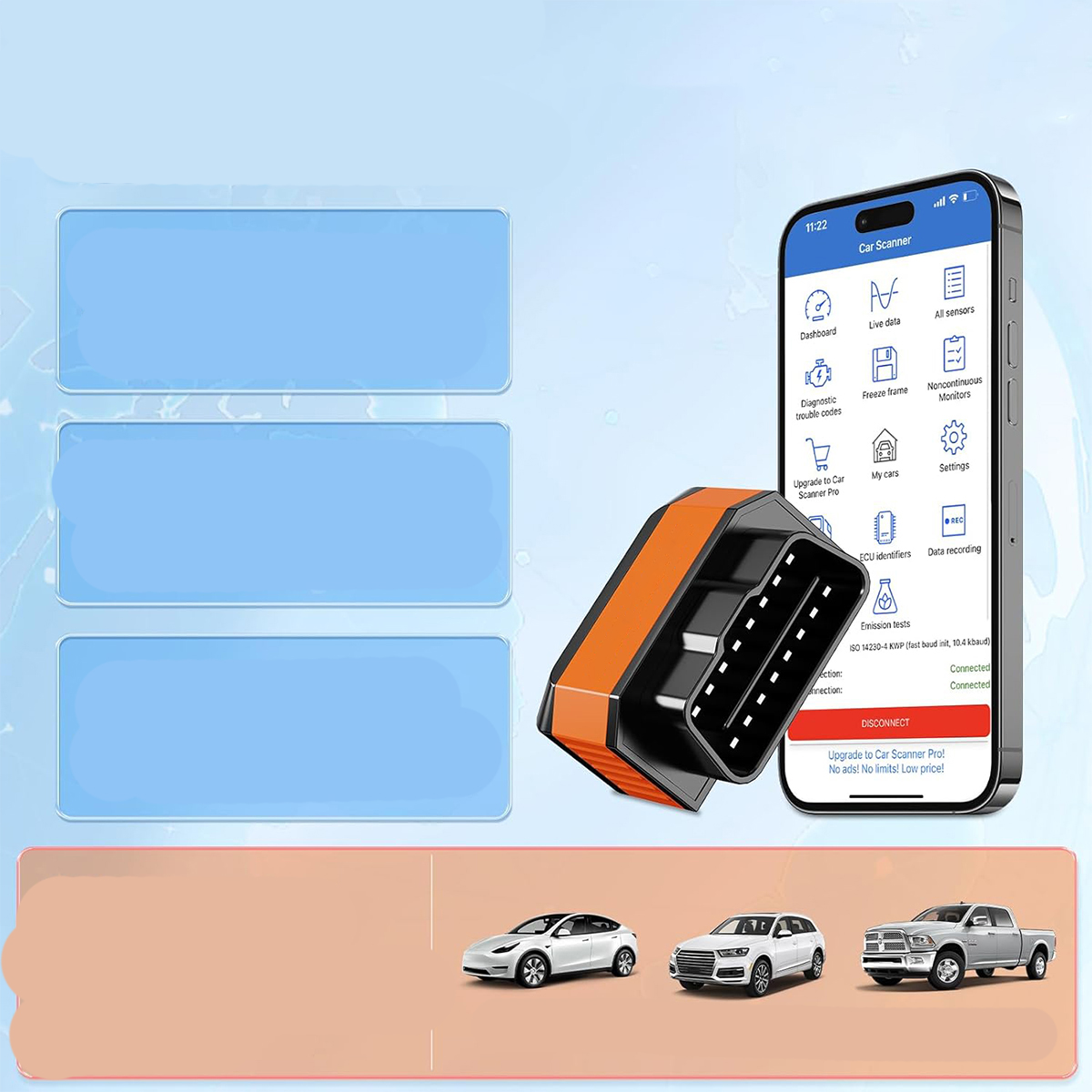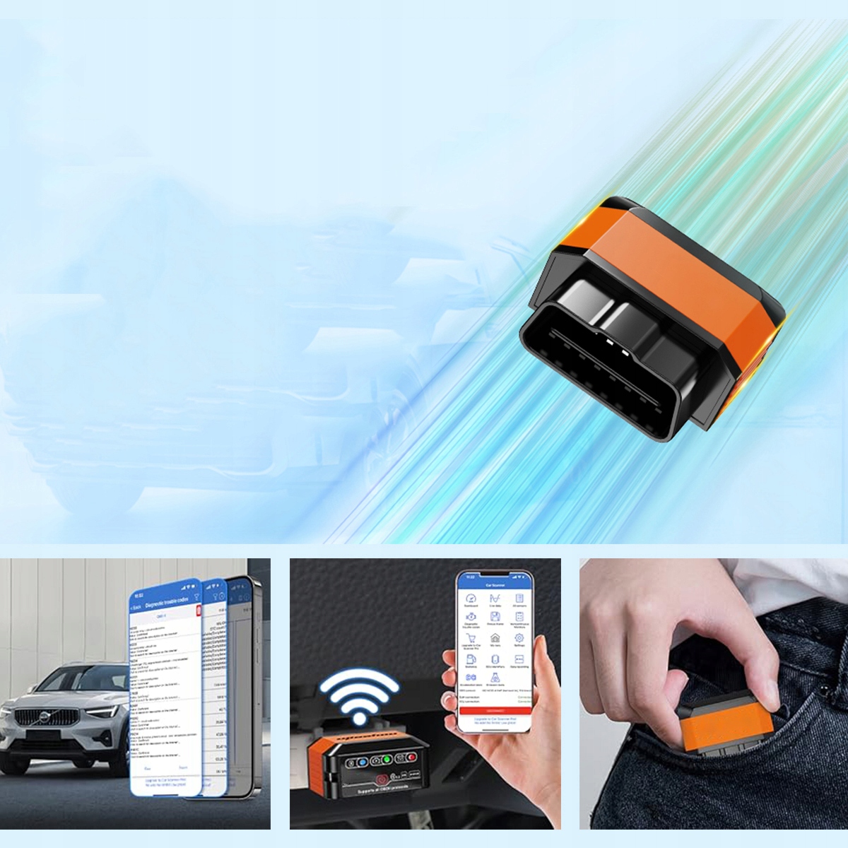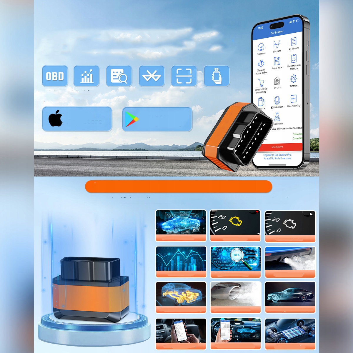 - Использование показаний ODB2 инструмент очень простой. Просто найдите разъем OBD и подключите его к использованию. Загрузите программное обеспечение и подключитесь к сканеру OBD2, отсканировав QR-код на упаковке. Подключите диагностический инструмент автомобиля к мобильному телефону. Его можно подключить к любому устройству iOS, Android и Windows.