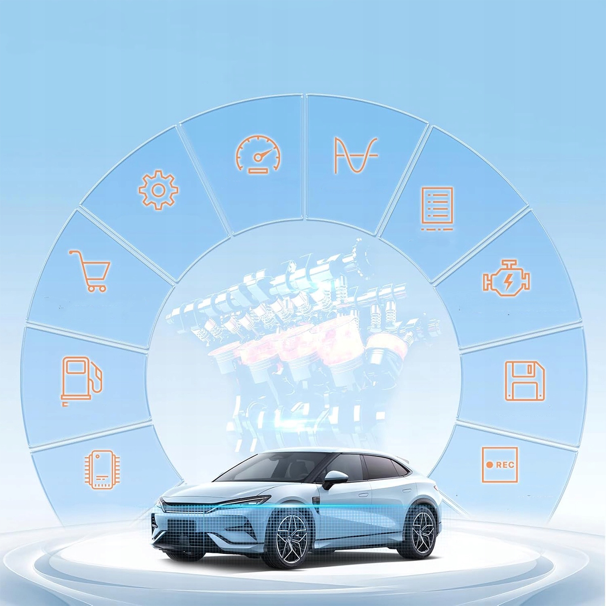 Наш OBD5.0 в основном считывает данные двигателя и выхлопных газов автомобиля. Он может идентифицировать неисправности двигателя, отображая коды неисправностей и удаляя эти коды после устранения проблемы с двигателем.