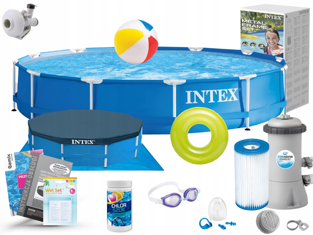 1. FRAME БАССЕЙН - Бассейн Металлический каркас от Intex, размер Ø 366 см x 76 см - объем 6503 л. Производитель указывает заполнение водой максимум 90%. Время сборки занимает около 30 минут.