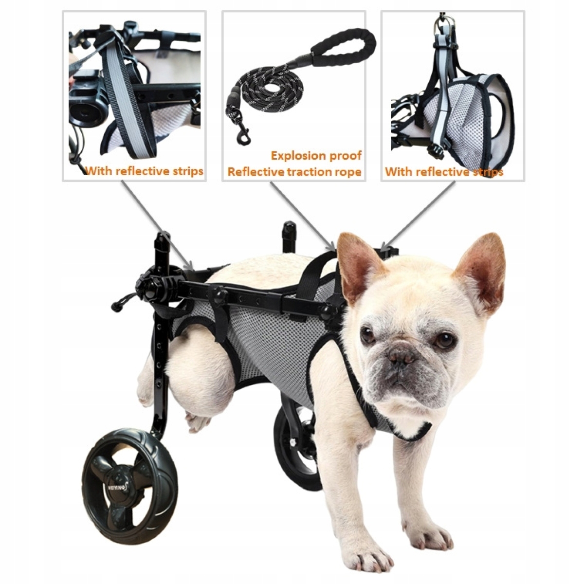 Інвалідний візок для собак, регульована підтримка задніх ніг, з повідцем 7-14 кг