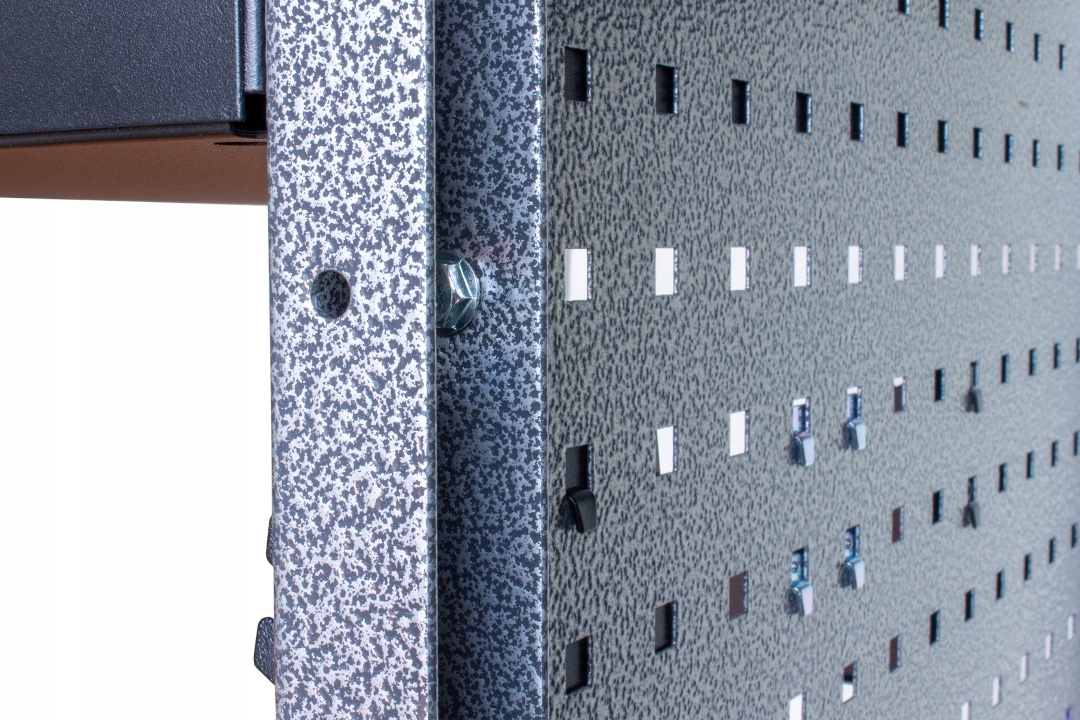 Над столешницей было установлено 2 перфорированных панелей (680 × 600 мм) из толстой стали, прикрепленных к профили с толщиной 3 мм , которые являются основой для распределения акций: