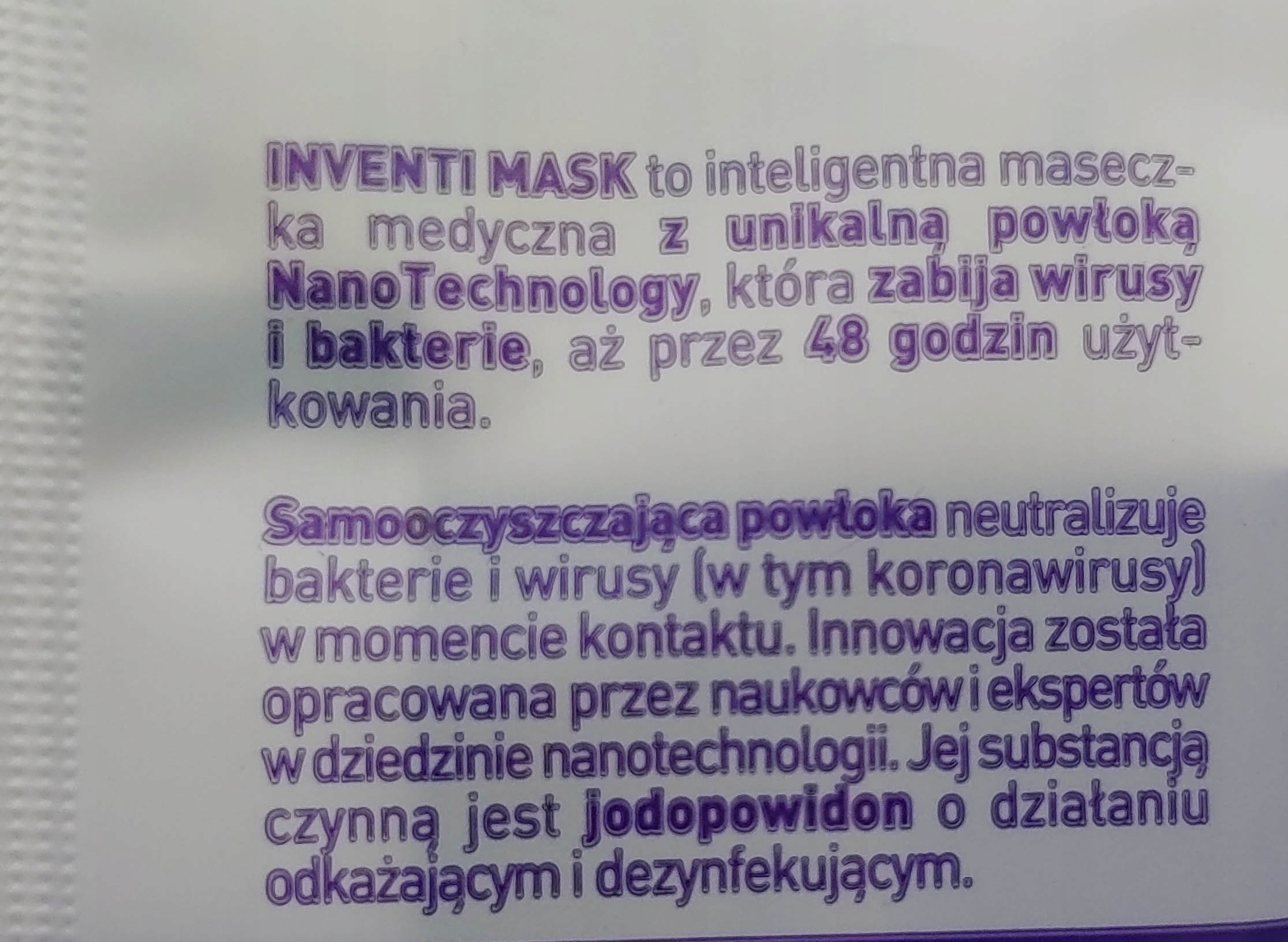 МАСКА INVENTI — это интеллектуальная медицинская маска с уникальным нанотехнологическим покрытием, которое убивает вирусы и бактерии на срок до 48 часов использования.