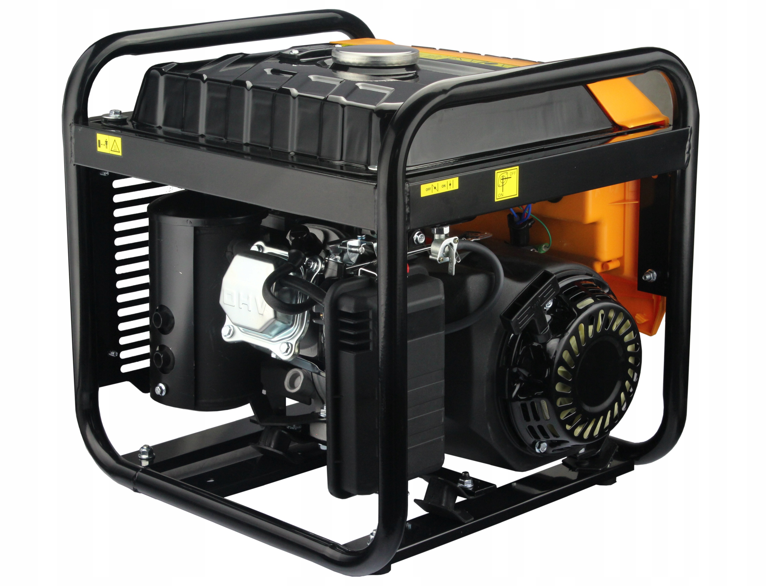 • Оснащен двумя розетками 230 В, термозащитой и датчиком масла при обнаружении нехватки масла выключает двигатель.