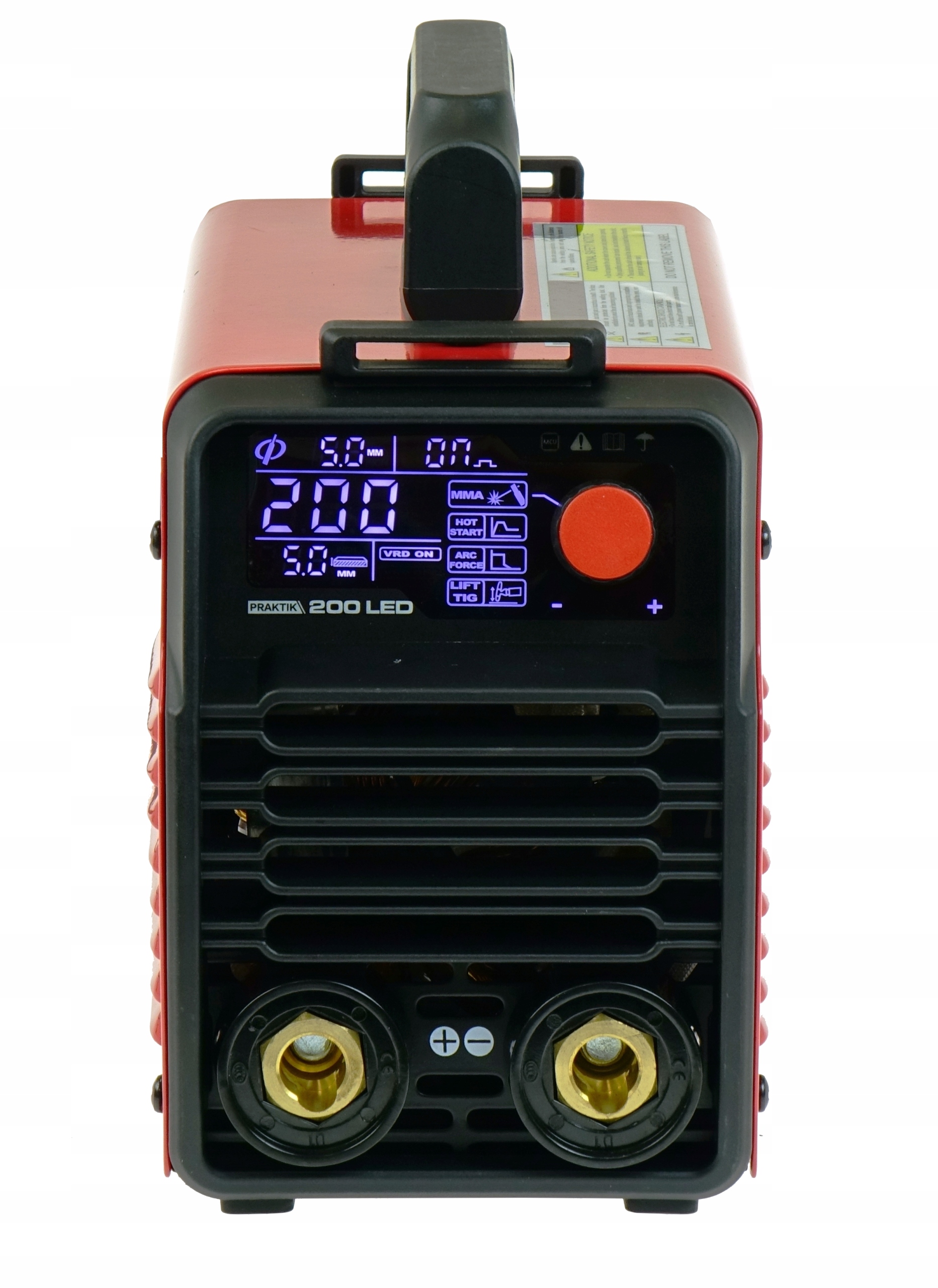 Инверторный сварочный аппарат PRAKTIK200 LED SYNERGY, обеспечивающий сварку MMA (электродом) и TIG DC (с зажиганием от короткого замыкания).