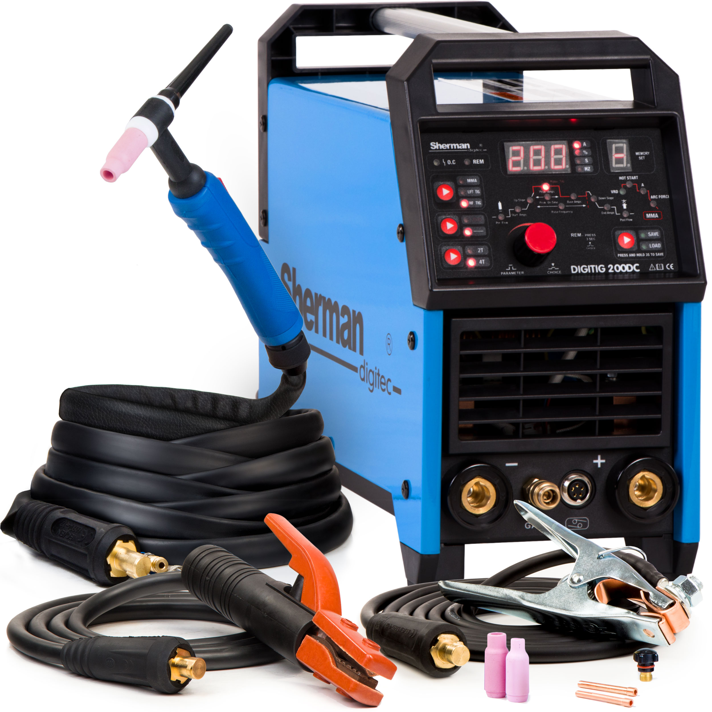 Сварочный аппарат Sherman DIGITIG 200 DC – идеальный сварочный аппарат для тех, кто ищет надежное оборудование с каналами памяти по лучшей цене на рынке! Имеет цифровое управление – это идеальный сварочный аппарат для профессиональной работы. Имеет возможность управления параметрами дуговых и импульсных характеристик в методе TIG, а также функциями VRD, ARC FORCE, HOT START в режиме MMA. Оборудование предлагает возможность запомнить 30 наборов настроек.
