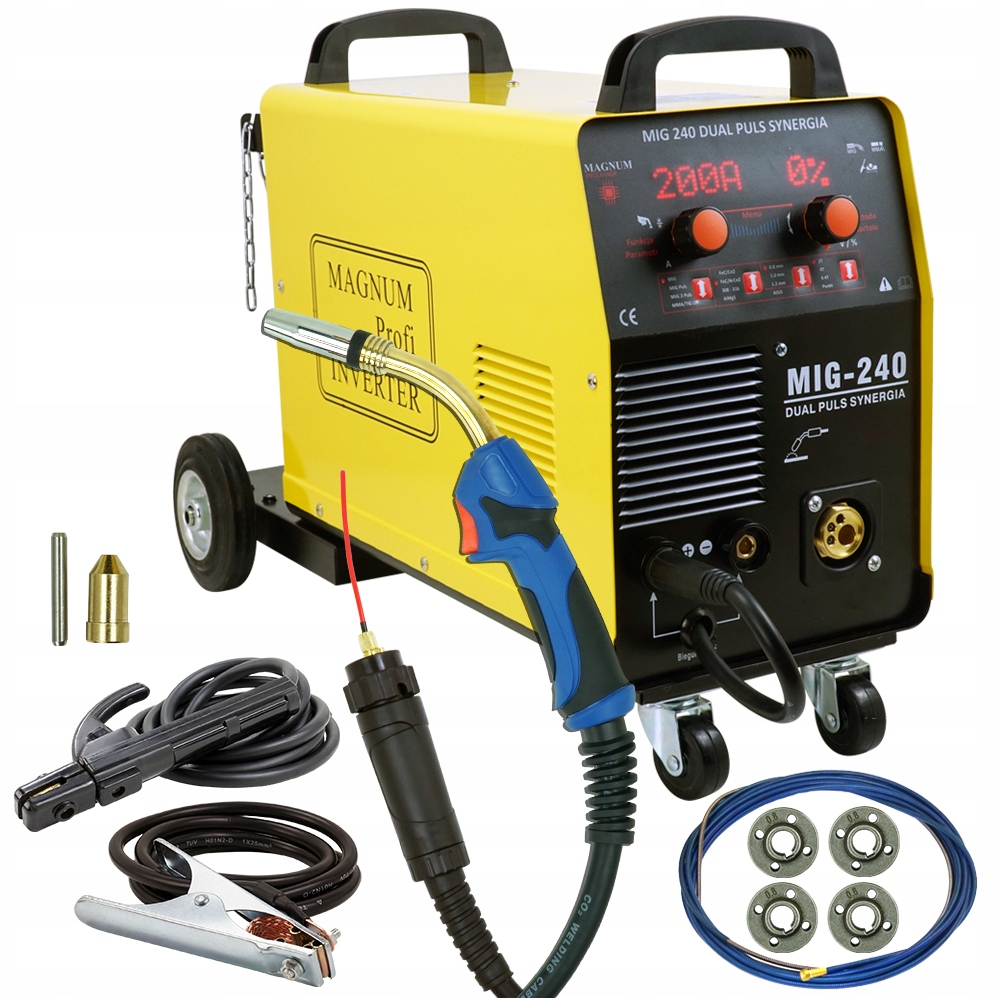 Magnum MIG 240 Dual Pulse Synergia — это новейшая, улучшенная версия MIG для сварки углеродистой стали и других требовательных сплавов, таких как алюминий и нержавеющая сталь. Аппарат изготовлен с использованием современной инверторной технологии и позволяет выполнять сварку следующими методами: MIG/MAG, MMA, TIG DC Lift и самозащитной проволокой без газа.