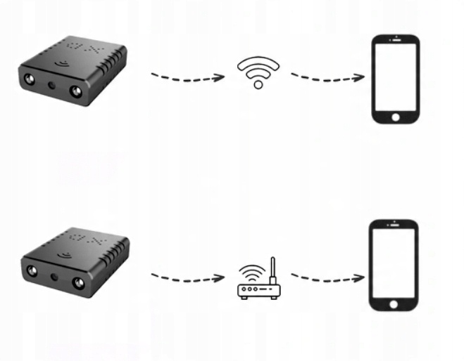 Мы подключаем камеру непосредственно с домашней сетью или точкой доступа, доступной по телефону, чтобы разрешить доступ к устройству после размещения в любом месте и доступа к сети.
