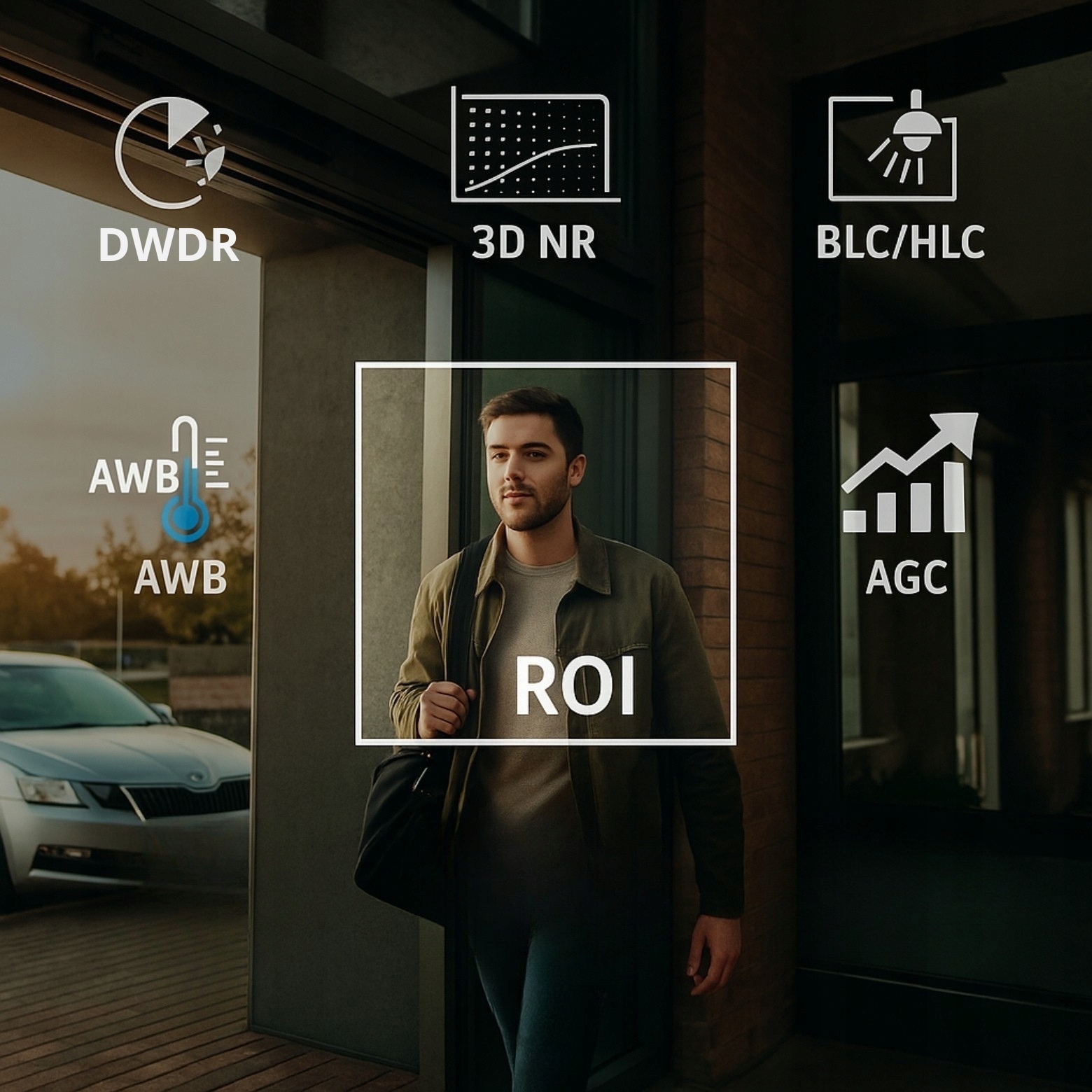 ➡️ Расширенные функции изображения: такие функции, как шумоподавление, световая компенсация и широкая динамика, улучшают качество записи (AWB, AGC, BLC, HLC, 3D NR, DWDR, RoI)