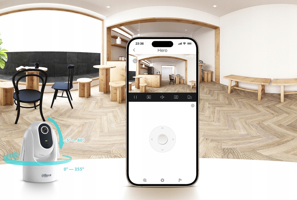 Электронной головкой камеры можно управлять с помощью приложения DMSS, что позволяет ей поворачиваться и наклоняться, обеспечивая полный контроль всех углов.