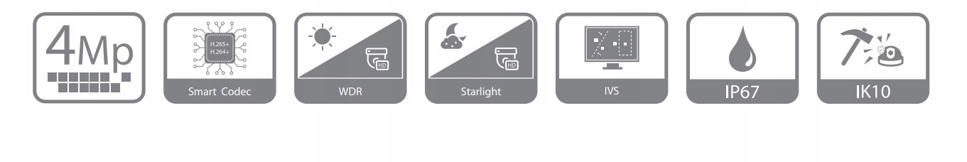 - AWB, AGC, BLC, HLC, 3D NR, WDR 120 дБ, RoI.