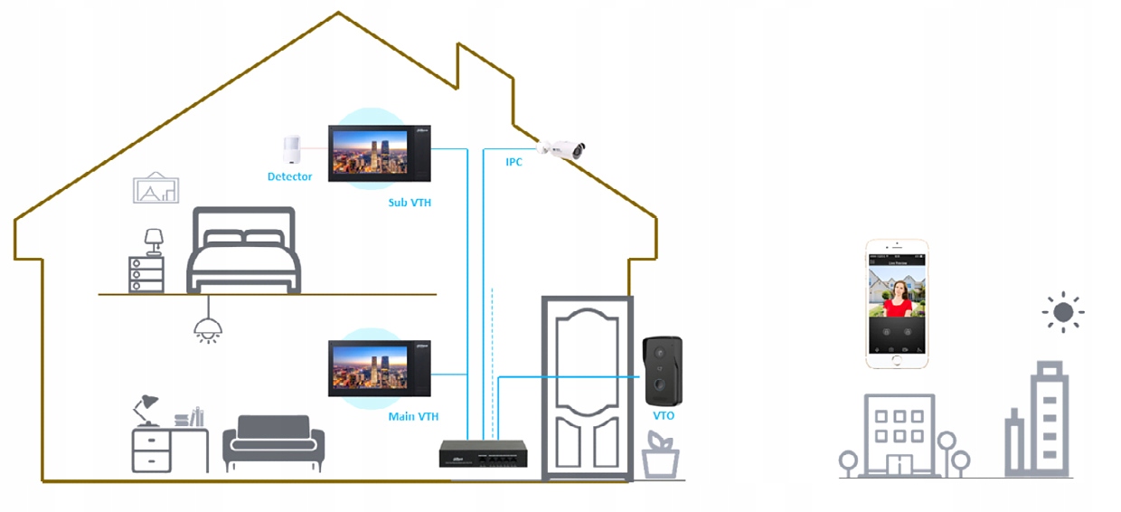 <р> Смартфон, планшет или внутренняя панель VTHможет служить монитором с возможностью открытия двери.Обнаружение движения