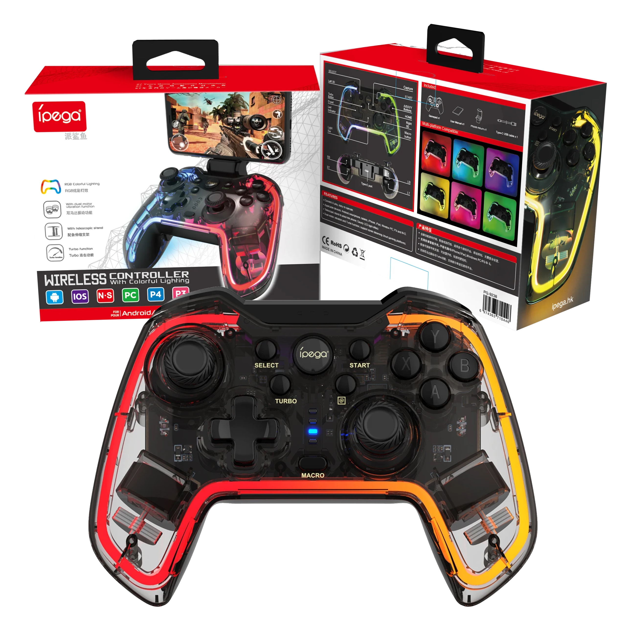 iPega PG-9238 Wireless GamePad RGB Controller, Android, iOS, PC, PS3