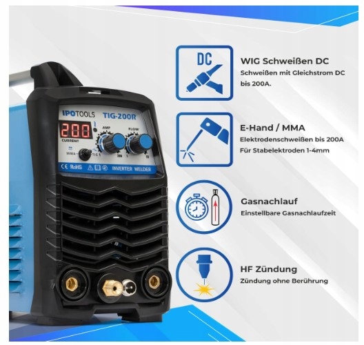 - Ipotools Tig-200r ► Tig-200r-это полностью цифровой сварщик инверторов 200 A DC с зажиганием HF │ MMA / E-Hand │ IGBT-технология │-Cypfle Display
