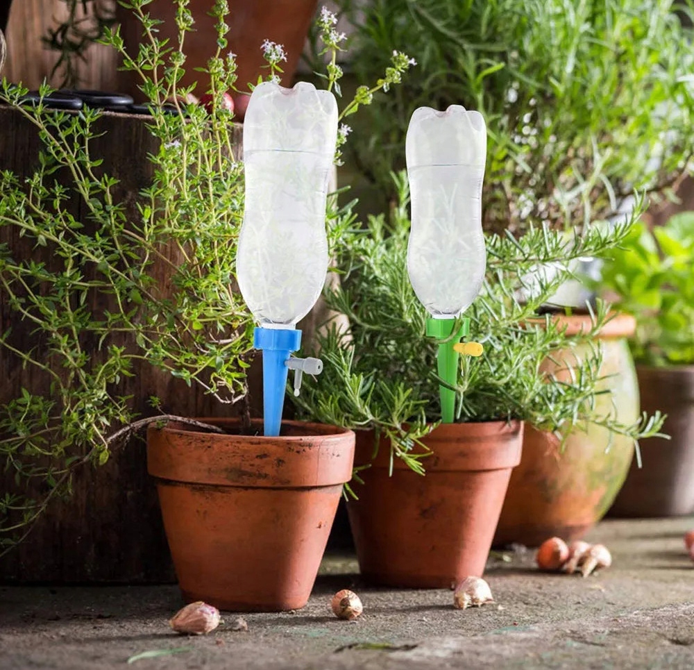 - ЛЕГКАЯ УСТАНОВКА - Чтобы вода могла течь, отрежьте ирригационный наконечник (чем больше отверстие, тем быстрее будет течь вода). Затем прикрутите оросительное устройство к выбранной вами бутылке и аккуратно воткните его в землю.