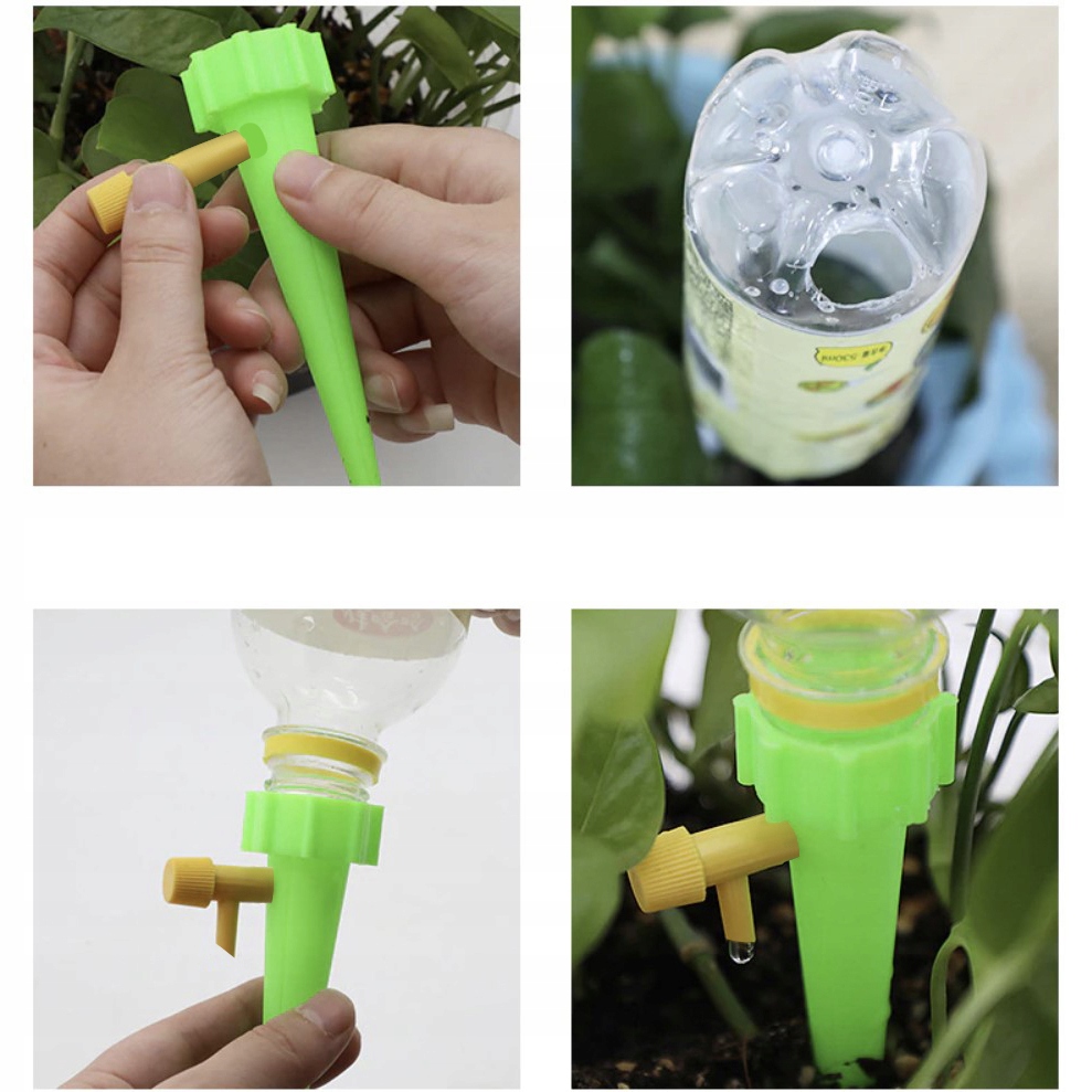 - ЛЕГКАЯ УСТАНОВКА + КРАН - просто прикрутите увлажнитель к бутылке с водой (лучше всего с отверстием). в бутылке), вставьте в землю вместе с растением и открутите кран, а затем с помощью ручки отрегулируйте поток воды, подающей воду к растению.