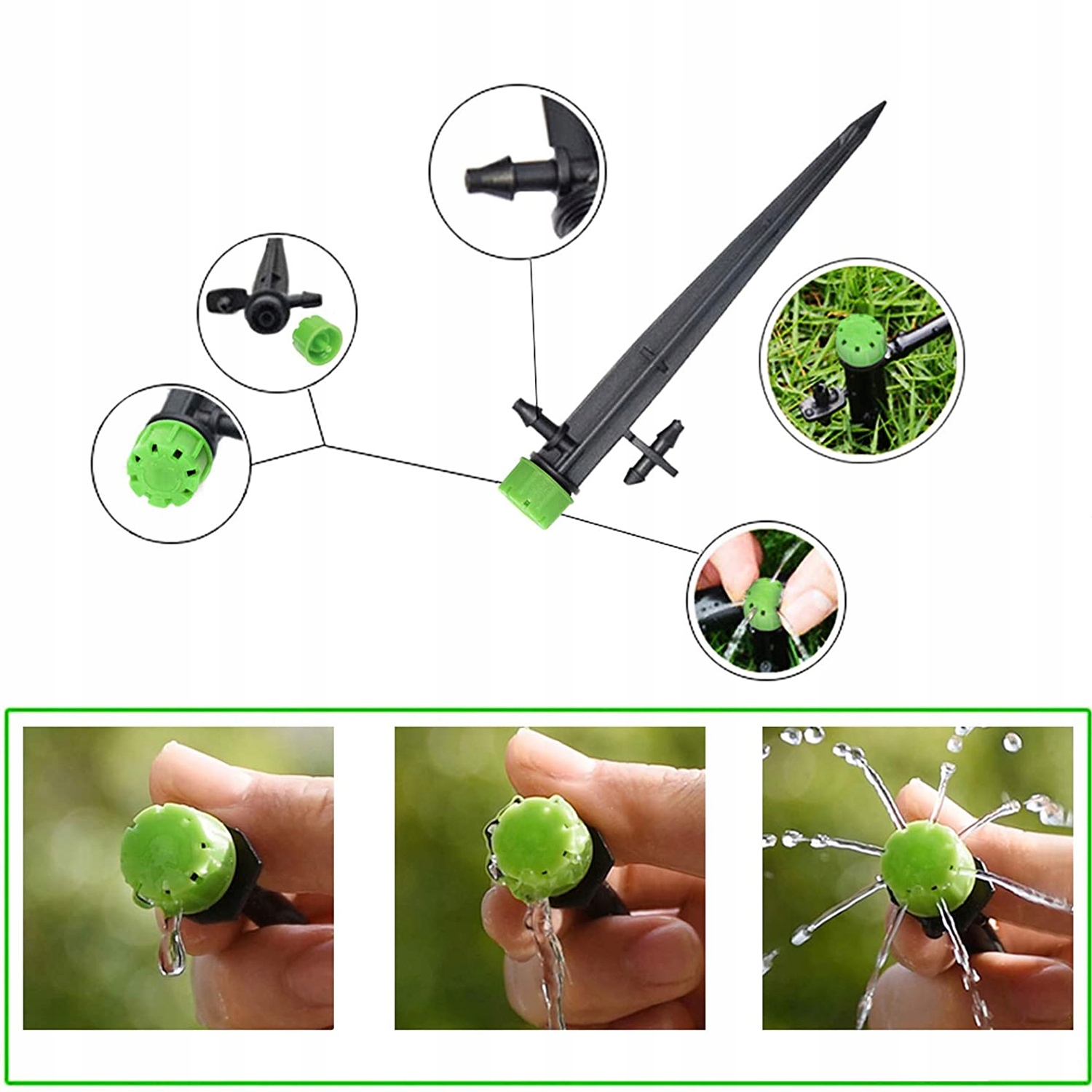 - ✅Регулировка на 360 градусов: Капли поливной воды излучают на 360° полный рисунок распыления с 8 отверстиями, регулируемый капельный полив орошения, вы можете регулировать объем воды, поворачивая внешнюю крышку, чтобы открыть или закрыть отверстия, экономя воду и деньги.