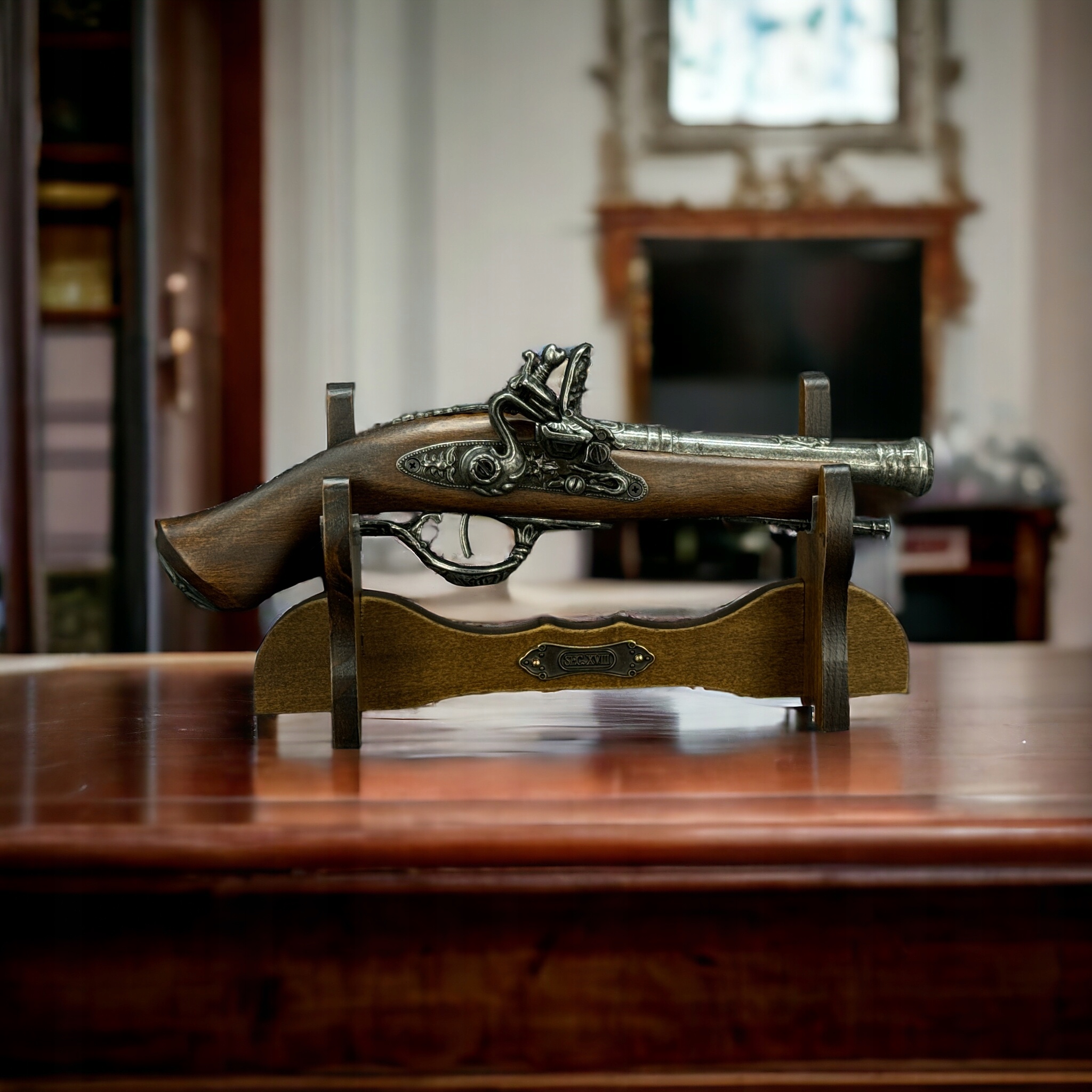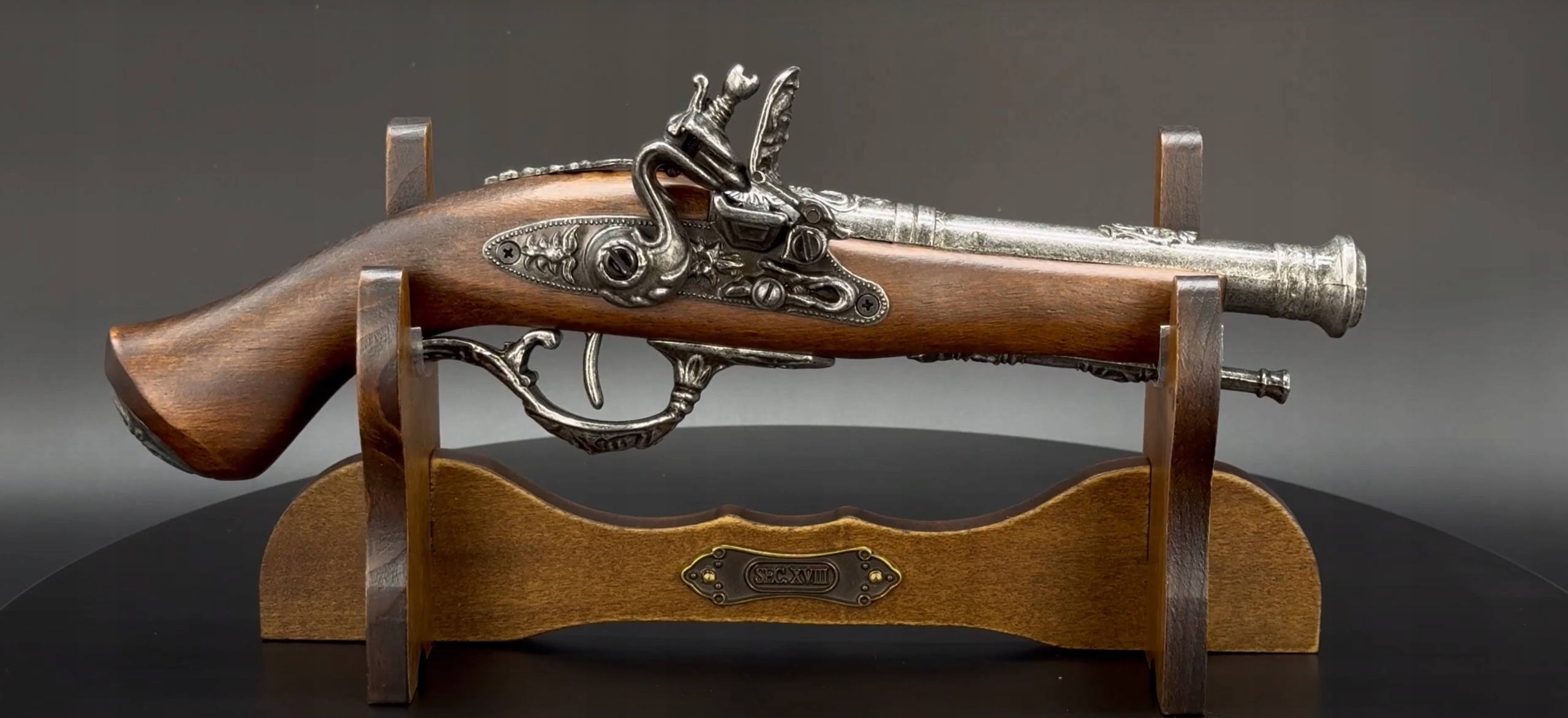 Перед вами итальянский кремневый пистолет XVIII века. В свое время кремневые пистолеты получили широкое распространение и применялись также в Италии. Позже им пришел конец, как и другим видам оружия, которые должны были уступить место более совершенным образцам – револьверам и ударным ружьям. Прекрасная копия итальянского кремневого пистолета XVIII века непременно пополнит вашу коллекцию.