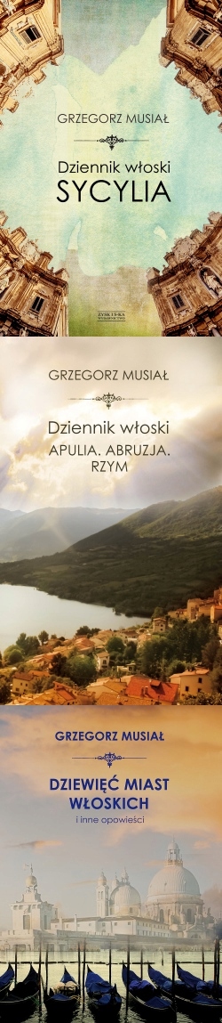 "Итальянский дневник. Сицилия" - это запись о путешествии Грегорца Мусиала - автора недавно опубликованного романа о жизни Тамары Лемпицки, под названием «Я, Тамара» - по самой красивой с точки зрения формы и природы, самого богатого в штрафах искусства прошлого и самых загадочных, когда он приходит на генес, экологически чистый исторический исторический. Неконтролируемая страсть к жизни его жителей, их красоты, фольклора и кухни, вызвав восхищение посетителей и все еще является источником вдохновения для артистов из настоящих и прошлых лет, включая польский, такой как Карол Шимановский или Ярослав Ивашкевич. В этом описании также находится «Итальянский dziennik. Сицилия» Грзегорца Мусиала, который, не скрывая вдохновение со своими предшественниками («Путешествия вокруг Сицилии» Ивашкевич часто упоминается здесь) развивает свою собственную книгу, полную восторга, но также злобные, а также ослепительные памятники истории, они постоянно прокручивают в этой книге. Повествование Грегорца Мусиала обогащено и представляет элемент итальянской комедии, буфто, необычный компаньон этого путешествия: итальянский ценитель и необычный оригинал, Ливио.