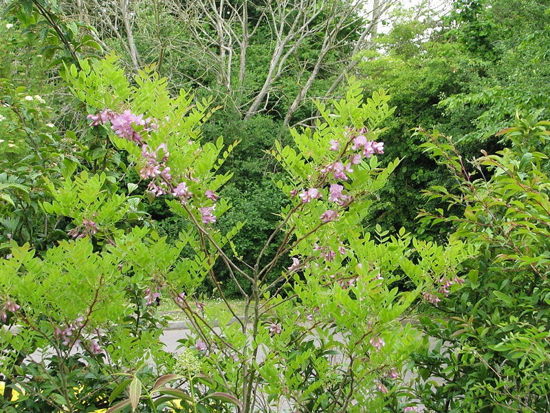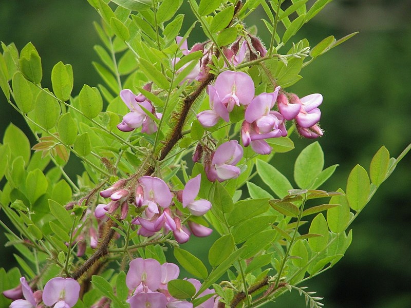 Настоящее украшение сада в период цветения. Цветки ароматные, розово-красные, собраны в длинные (20 см) свисающие соцветия. Цветет в мае и июне. Он может вырасти примерно до 2 м, образуя куст или небольшое деревце. Выделяет большое количество нектара, привлекающего насекомых, имеет очень приятный запах, обильно цветет