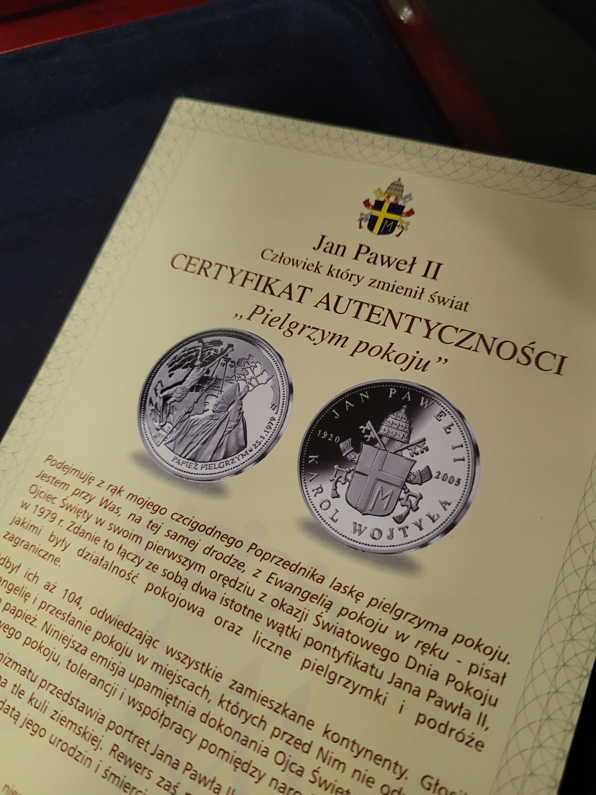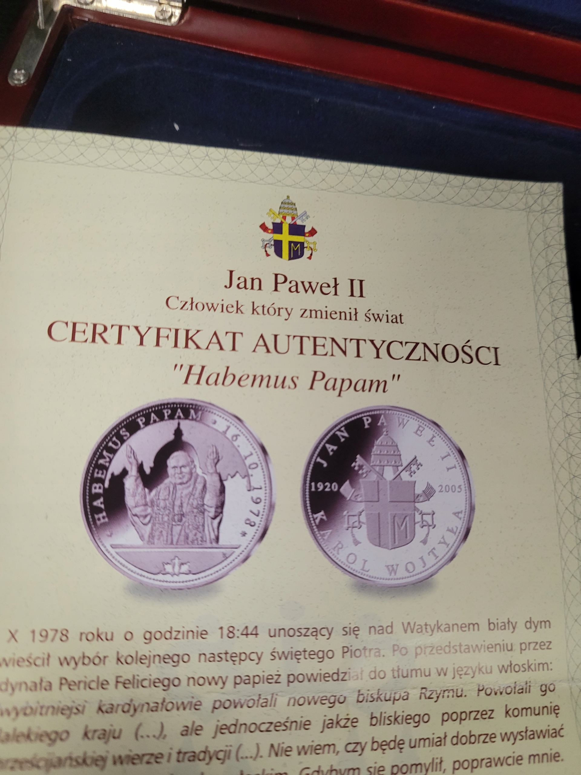 Просматривая «Иоанн Павел II - набор из 3 СЕРЕБРЯНЫХ монет + футляр», вы можете быть уверены, что данный товар из каталога «Иоанн Павел II» будет доставлен из Польши и проверен на целостность. В цене товара, указанной на сайте, учтена доставка из Польши. Внимание!!! Товары для Евросоюза, согласно законодательству стран Евросоюза, могут отличаться упаковкой или наполнением.
