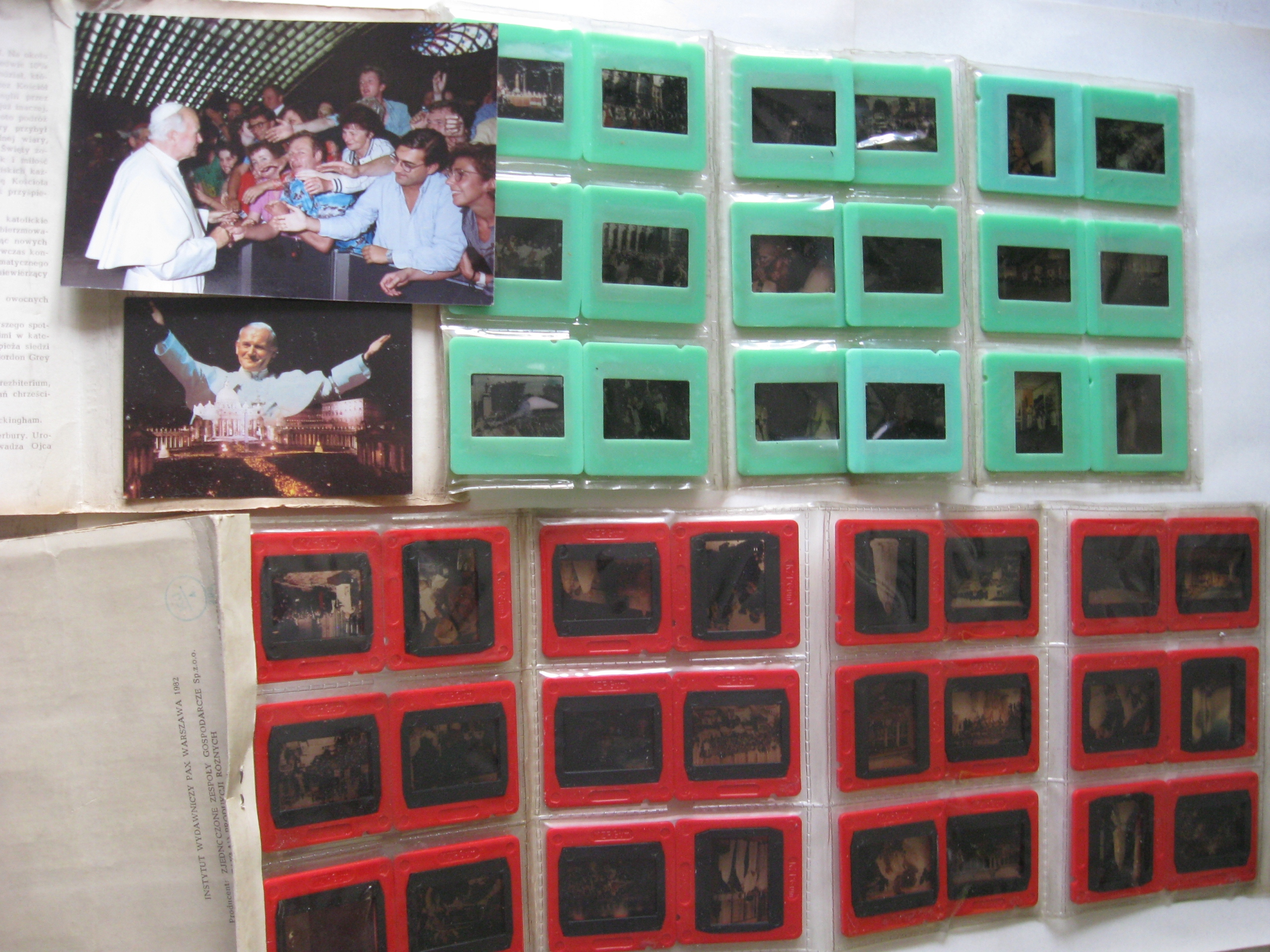 Набор из 2-х изданий общим количеством 42 слайдов о Папе Иоанне Павле II и его паломничествах (с фотография):