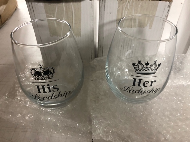 - На наших свадебных бокалах для жениха и невесты напечатаны различные хорошо продуманные надписи [Ее Светлость] и [Его Светлость] и изящные короны. , очень привлекает внимание.