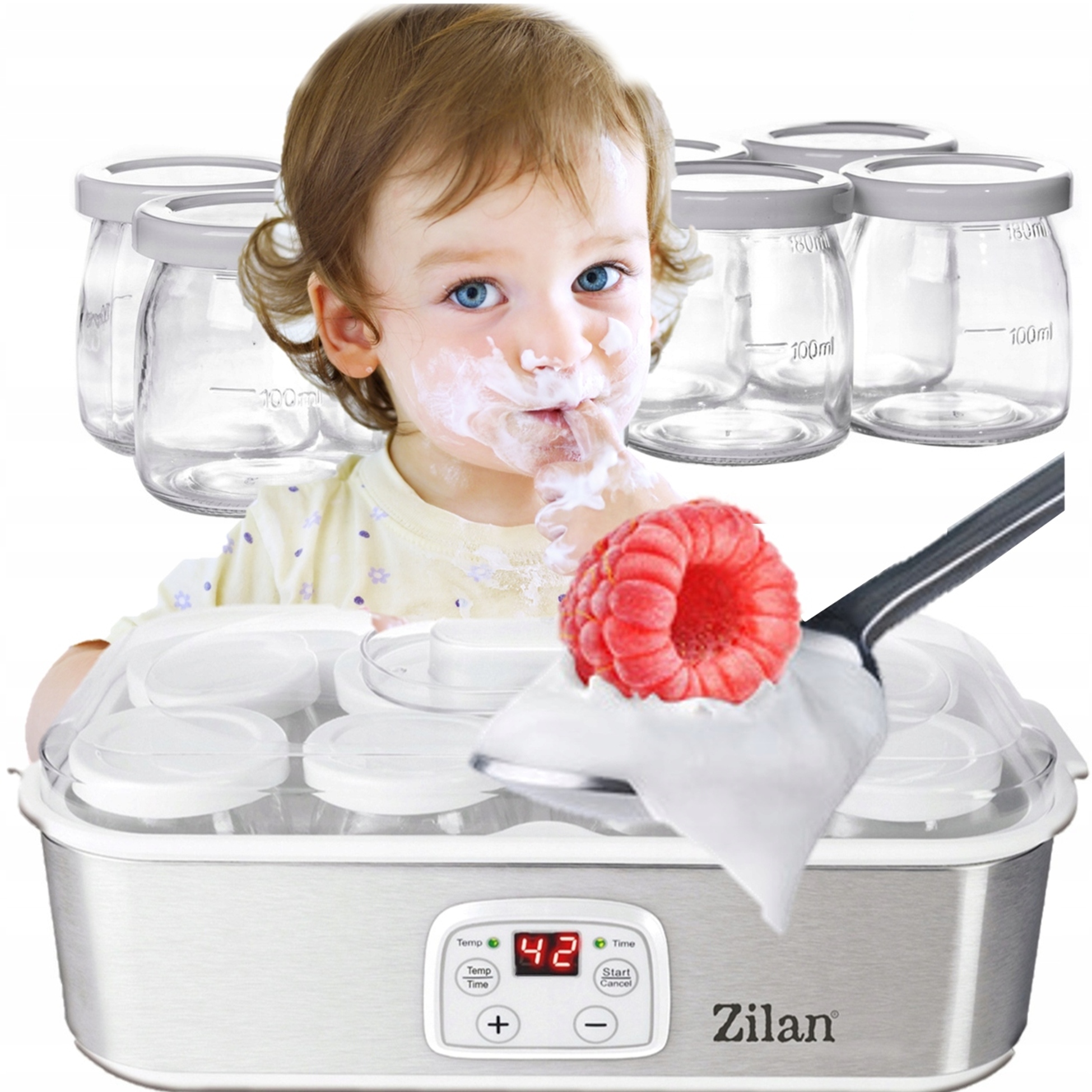 Приготовленный в 8 СТЕКЛЯННЫХ БАНКАХйогурт готов к употреблению СРАЗУ ПОСЛЕ ПРИГОТОВЛЕНИЯ. Прозрачная верхняя крышка облегчает наблюдение за изготавливаемым продуктом.