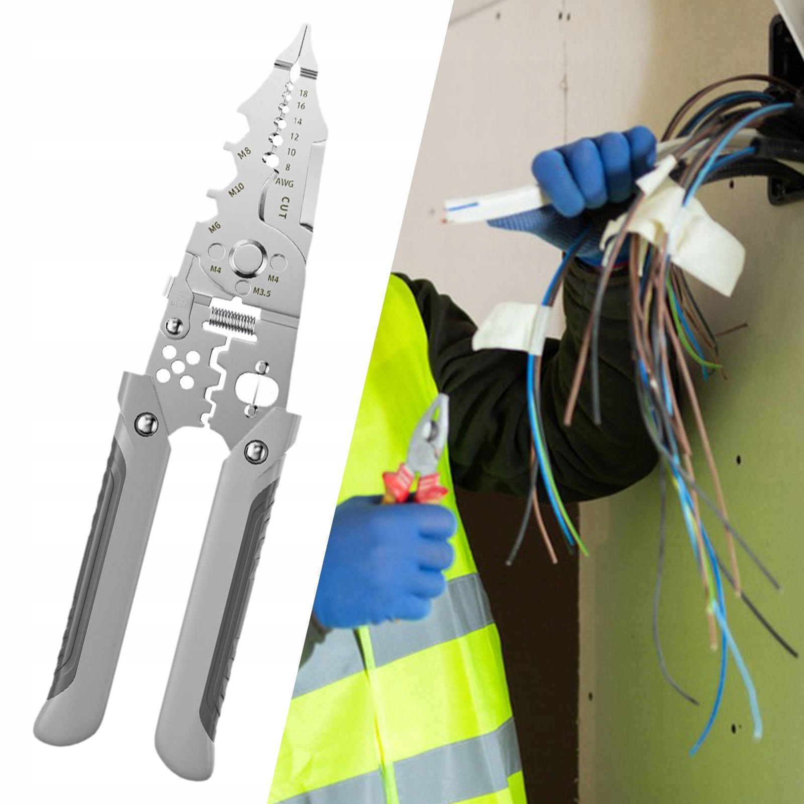 [много -функциональный]: проволочные щипцы идеально подходят для резки, расщепления, зажима, зажима, обмотки, резки и сбора проводов и т. Д.; Функция ключей, вы можете затянуть M6, M8, M10