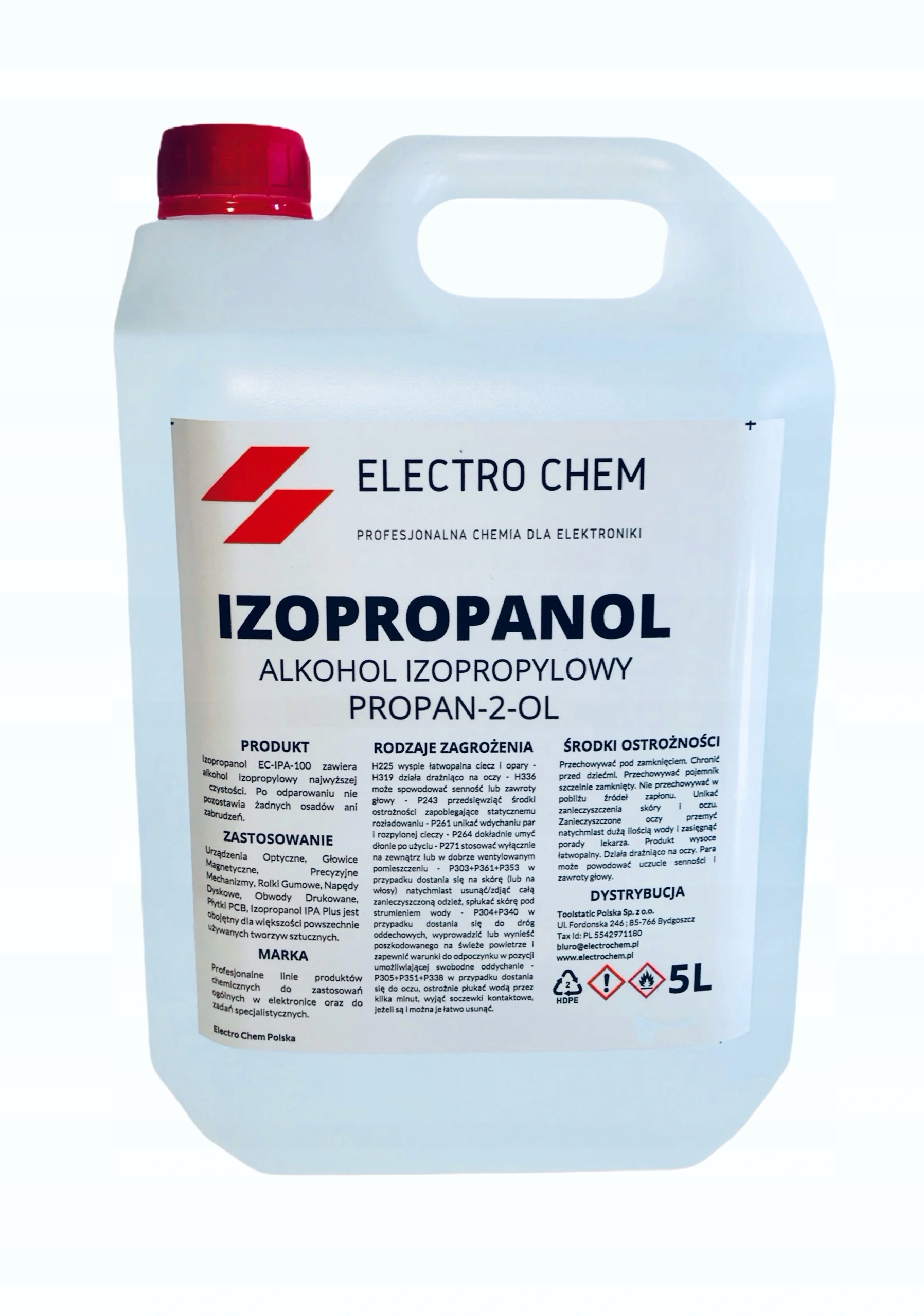 Изопропиловый спирт также подходит для очистки электронных систем и оптики, поскольку не повреждает их благодаря соответствующей степени испарения и соответствующим химическим свойствам. IPA прекрасно очищает системы от пыли и загрязнений, а затем испаряется, оставляя компоненты чистыми и сухими, что приводит к увеличению их срока службы и снижению риска перегорания.