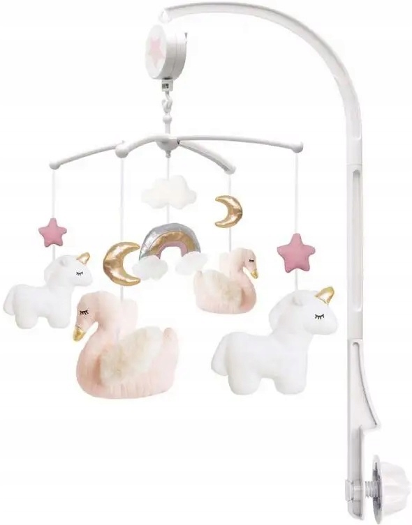 Прекрасная карусель, музыкальная шкатулка над детской кроваткой с красивой, спокойной мелодией, которая убаюкает вашего ребенка. Карусель в комплекте с монтажным кронштейном, разработанным шведским брендом Jabadabado. Милые единороги, лебеди и очаровательная радуга надолго подружат вашего малыша, а знакомая мелодия облегчит засыпание. Карусель заводная, имеет кнопку для отключения вращения плюшевых игрушек и может сама проигрывать мелодию.