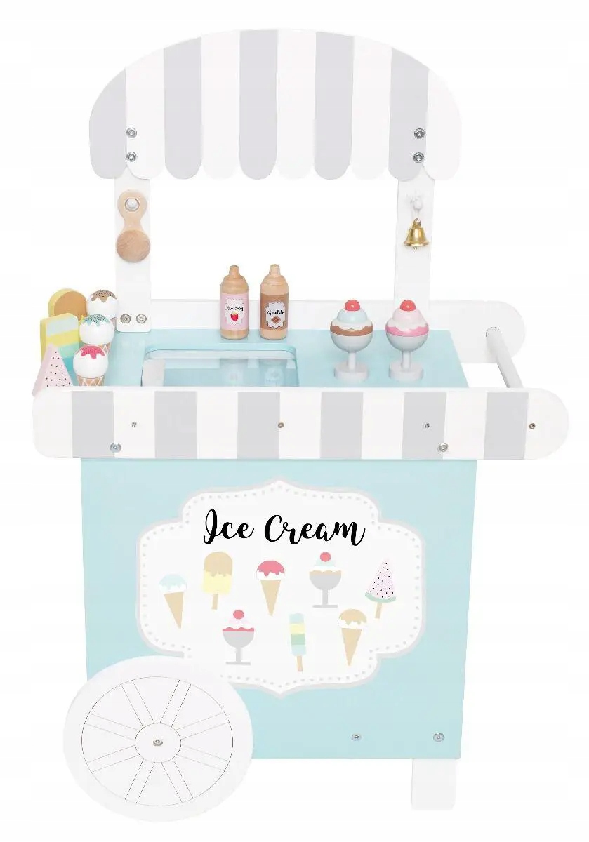Деревянный магазин мороженого на колесах шведского бренда Jabadabado -гарантия успешного, творческого и вкусного веселья! Все дети любят мороженое - мобильный магазин с мороженым, позволит вам подавать ваши любимые угощения всем плюшевым мишкам, куклам и членам семьи. Игра дома, в магазине или кафе-мороженое идеально стимулирует воображение детей, развивает словарный запас и применение поездов мороженого и ручной координации. Отличный подарочный набор!