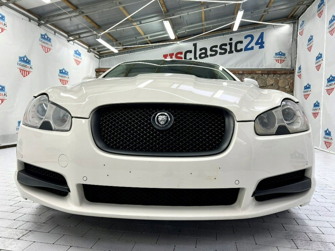 Jaguar XF от 2008 года - это элегантный седан с впечатляющим внешним видом, окрашенный белый, который подчеркивает его спортивный характер.