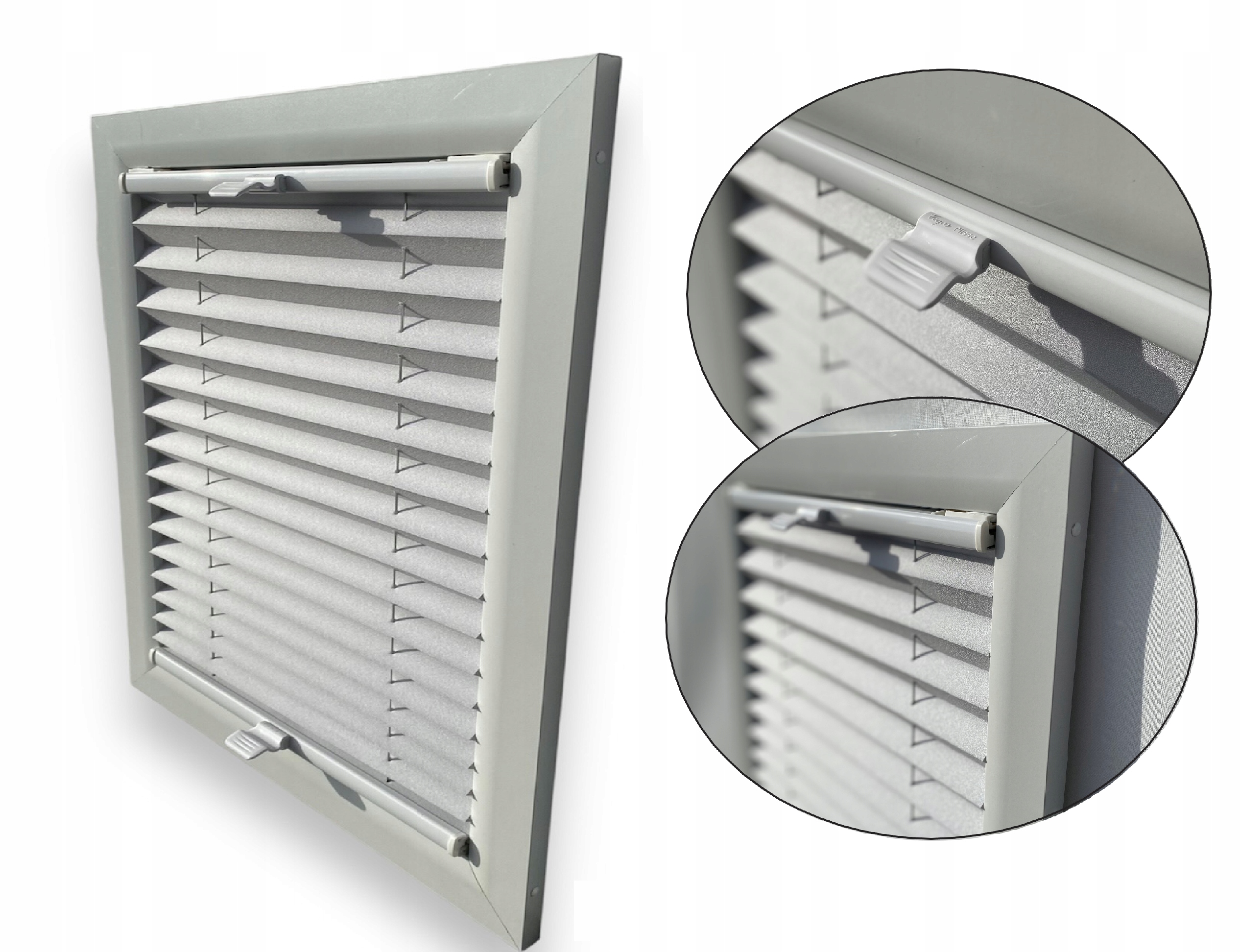 Установка с использованием специальных неинвазивных бесцветных брекетов – сверление не требуется. Складка работает на оконной раме. Ручек достаточно для установки на оконную раму без необходимости сверления и привинчивания.