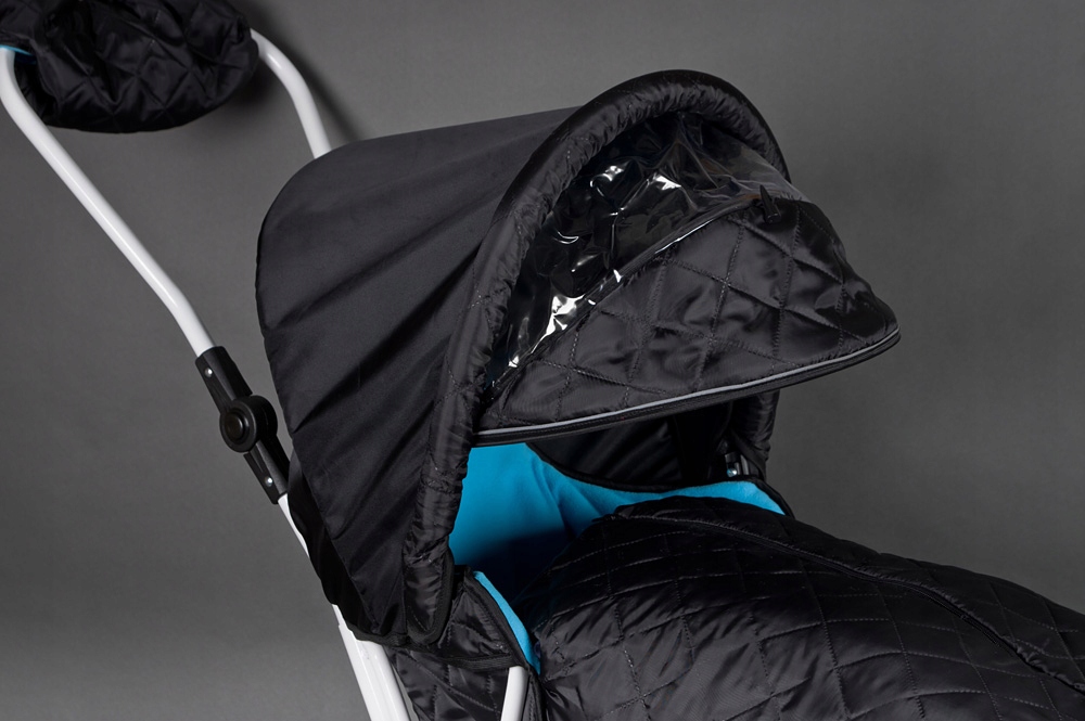 Навес защищает от снега и ветра. Капюшон можно быстро снять в любой момент, как и остальные аксессуары – спинку или толкатель. Капюшон регулируется, поэтому вы можете свободно расположить его. Балдахин с окошком сзади – благодаря этому малыш всегда у нас на виду. Сзади на капюшоне имеется большой карман для ключей, кошелька и т. д. Дополнительно сзади на кармане и на передней части капюшона расположены светоотражающие полосы, обеспечивающие безопасность и видимость во время вечерних прогулок. Спереди у капюшона есть несколько вариантов выдвижения дополнительного навеса, поэтому мы можем регулировать его в зависимости от погоды во время прогулки.