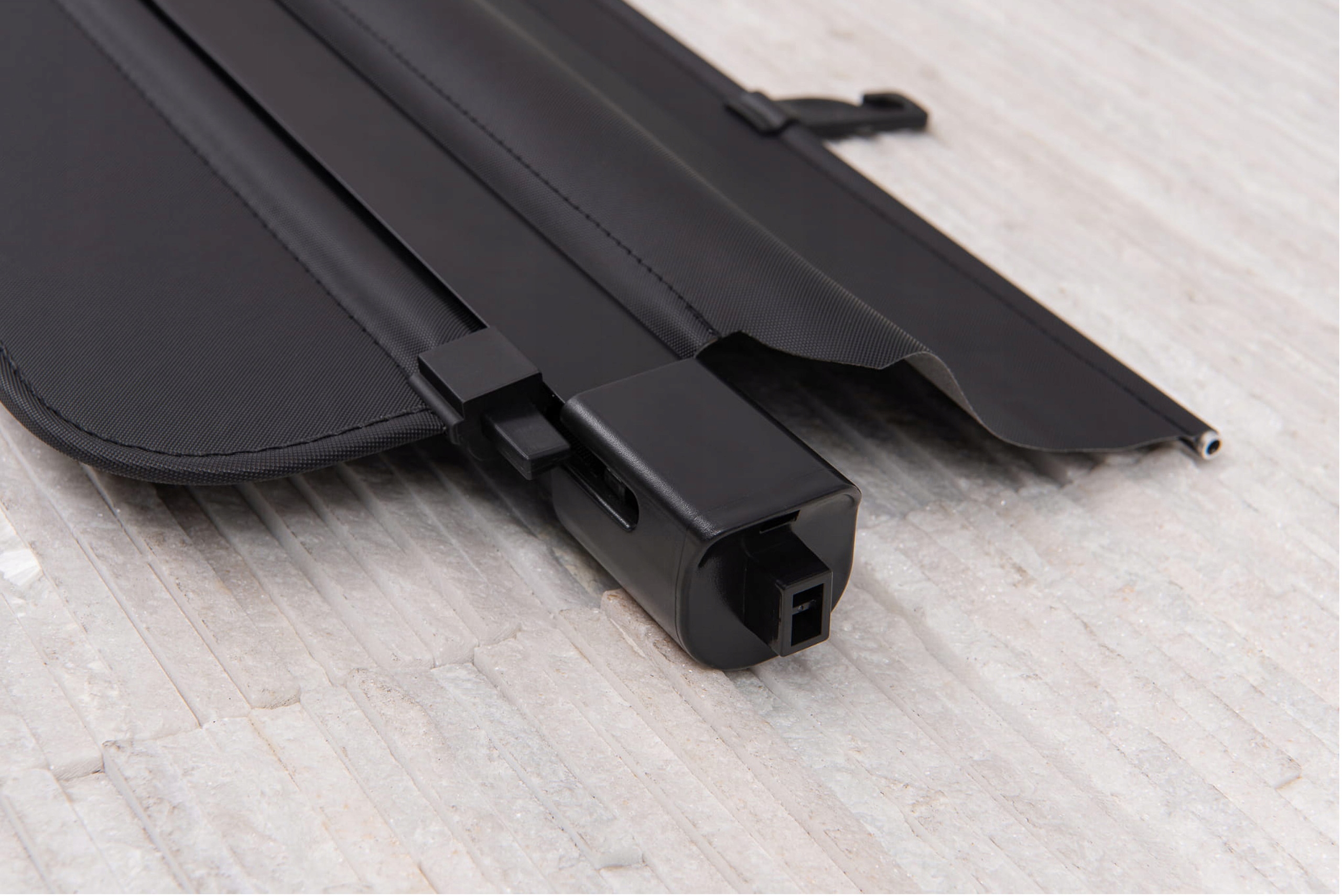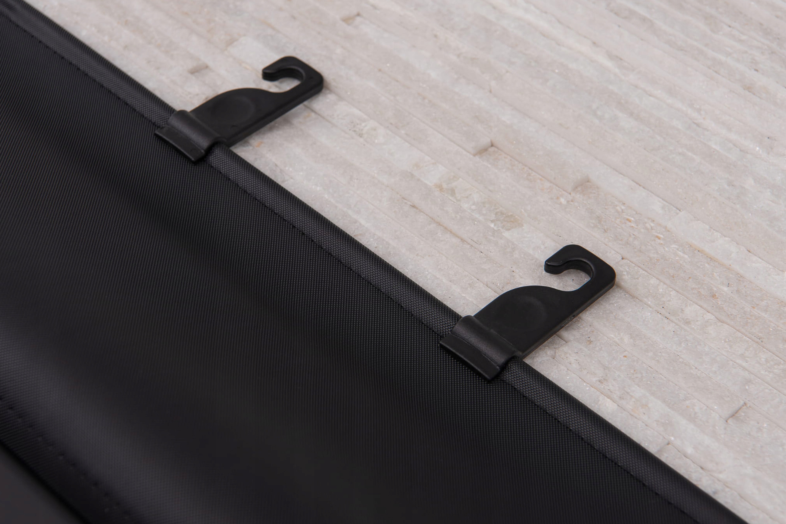 Использование складной рулонной шторы позволяет защитить багажное отделение от чрезмерного солнечного света. Он также закрывает содержимое багажника, тем самым снижая риск кражи вещей внутри. Элегантный черный цвет и эстетика исполнения делают рольставни идеально гармонирующими со стилем автомобиля. Покрытие штор изготовлено из материала, устойчивого к повреждениям и обесцвечиванию под воздействием солнечных лучей и перепадов температур, благодаря чему изделие долго выглядит великолепно.