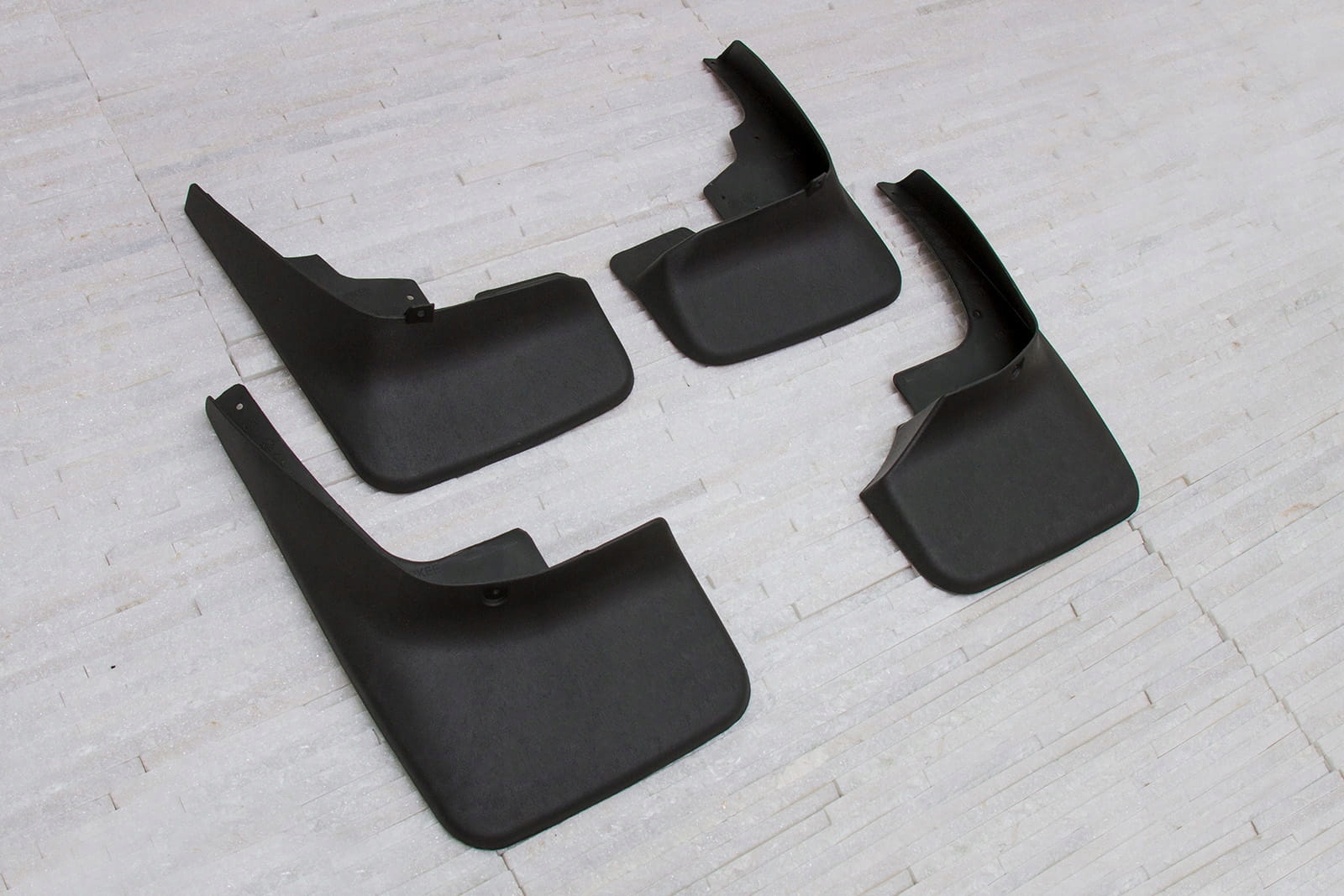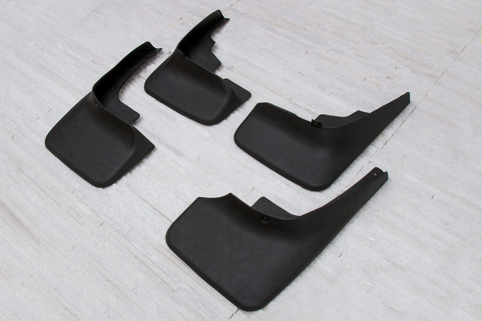В комплект входит комплект из четырех брызговиков и элементов крепления. Изделие устанавливается на заводские места, без дополнительных доработок. Мы рекомендуем установку в профессиональной мастерской.