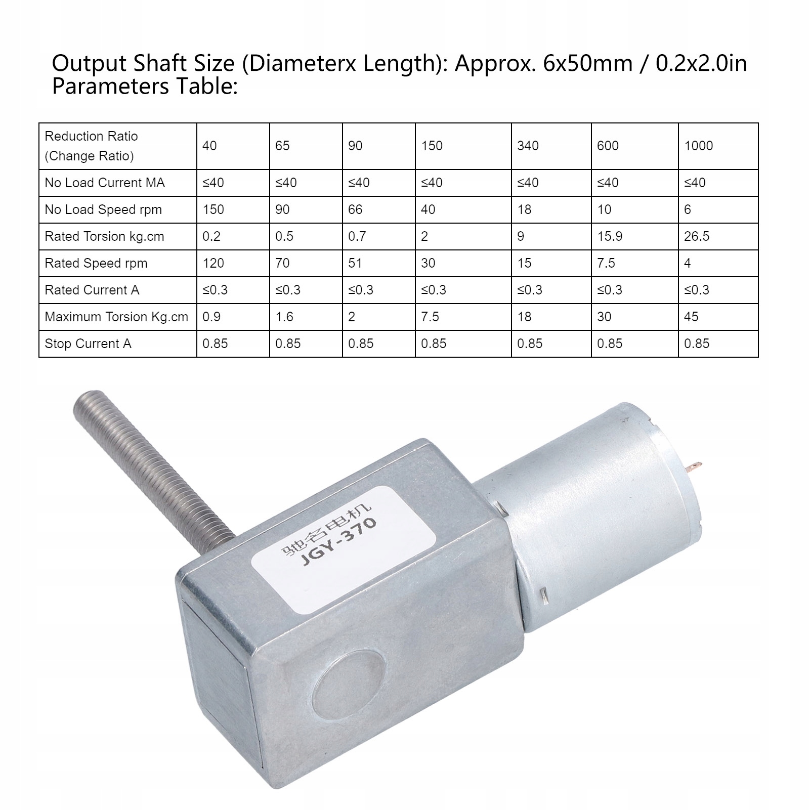 - Размер выходного вала (диаметр x длина): прибл. 6x50 мм / 0,2x2,0 дюйма