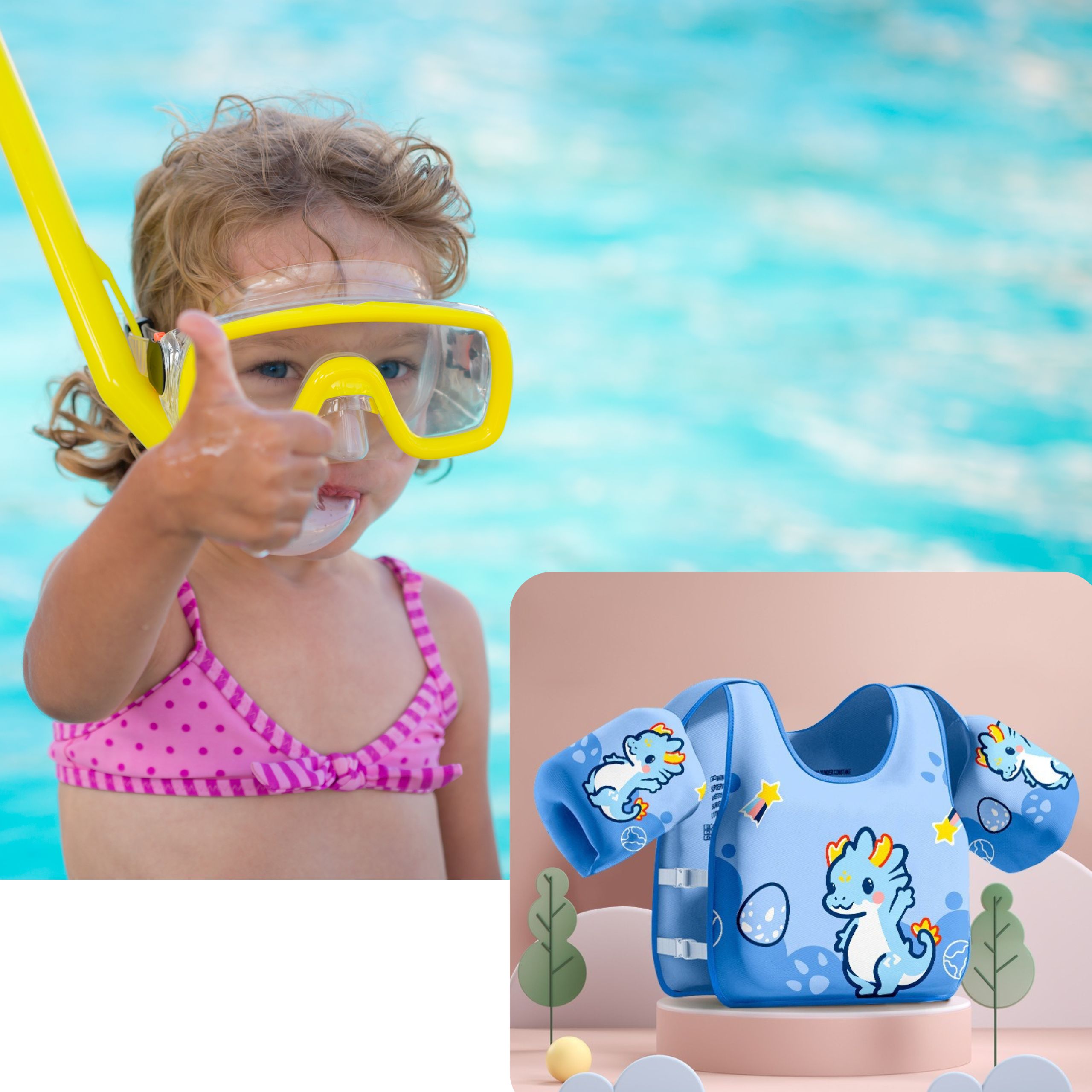 жилет был изготовлен из мягкой ткани, дружелюбной кожи и легкой пены. ребенок может играть свободно, прыгать, брызгать и наслаждаться летом без ограничений.