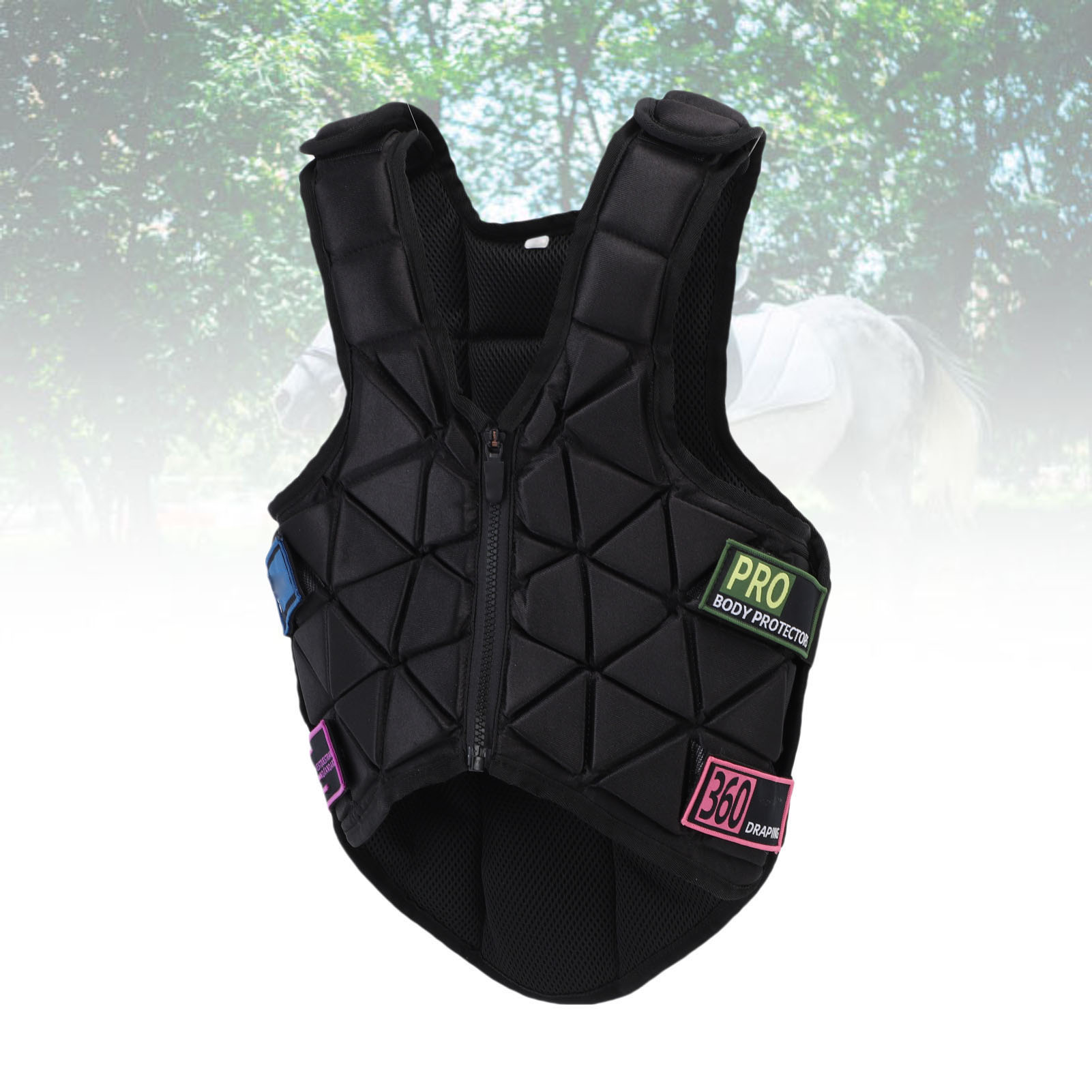 3. Легко надевать: переднюю молнию жилета для верховой езды легко и удобно надевать и снимать, обеспечивая удобство и комфорт для вашей лошади.