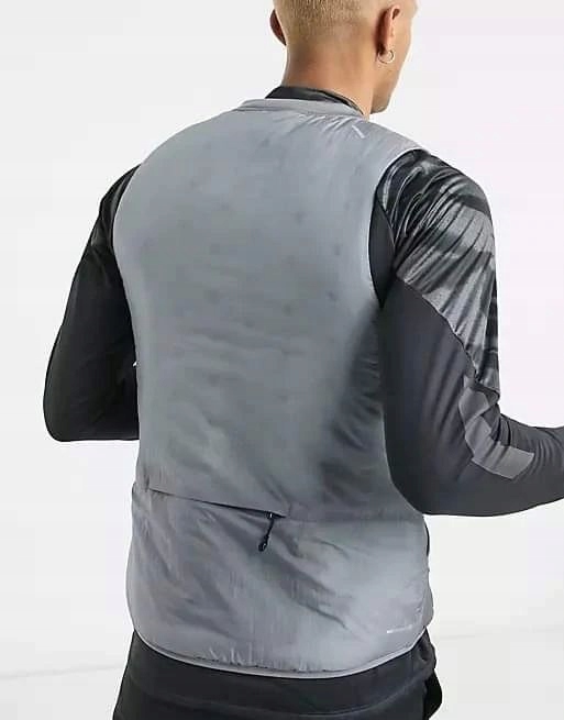 Новый серый мужской жилет Nike Running Aerolayer Gilet. Жилет изготовлен из материалов с технологией Nike AeroLayer, которые обеспечивают светоизоляцию и водонепроницаемость. Жилет имеет два боковых кармана на молнии и один задний карман также на молнии. В левом нижнем углу спереди расположен светоотражающий логотип Nike, улучшающий видимость в условиях низкой освещенности. Жилет имеет слегка удлиненную спинку, обеспечивающую защиту при движении. Высококачественный материал. Стирайте в соответствии с инструкциями производителя.