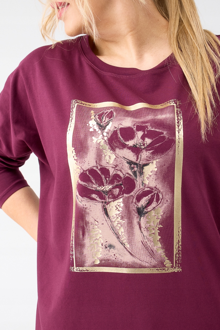 ✅ Перед украшен эффектным принтом с цветочным мотивом в золотой оправе.