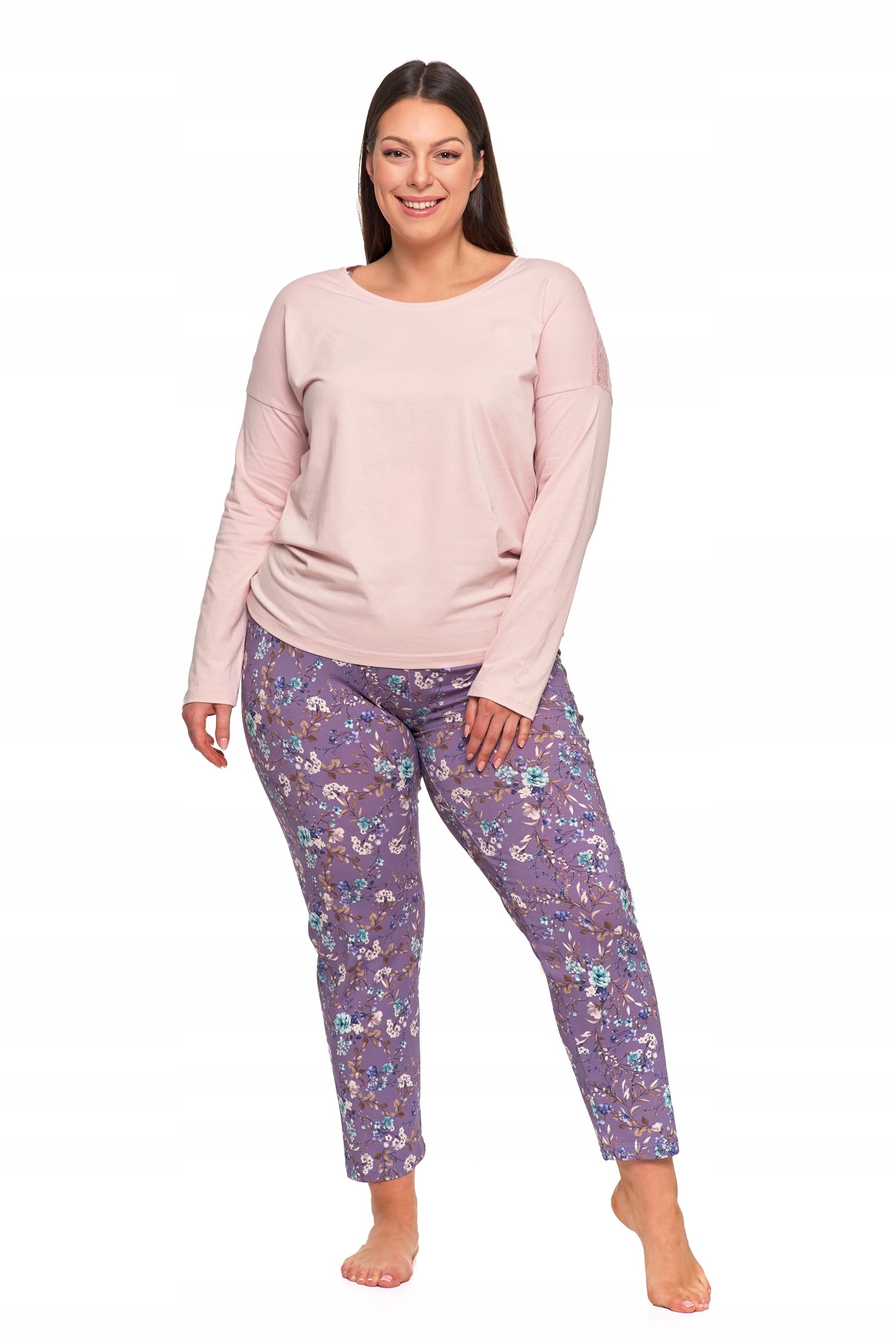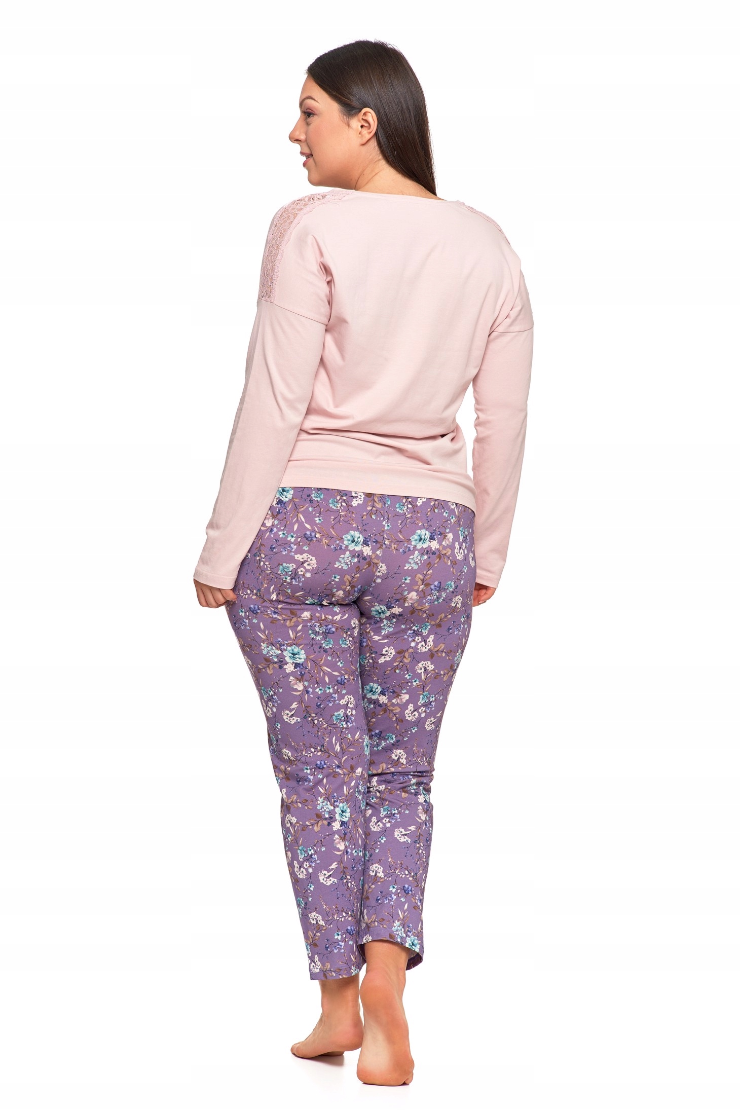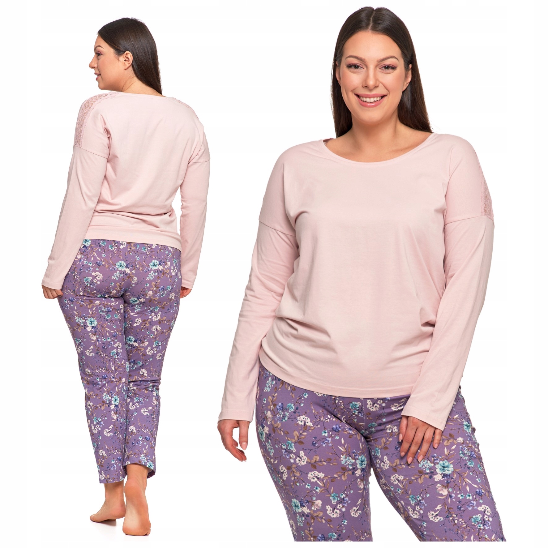 Мы предлагаем стильную женскую пижаму в размере больших размеров, что идеально сочетает в себе комфорт с элегантностью. Пижама состоит из длинной блузки и круглого вырез, который обеспечивает комфорт ношения в течение года. Блузка имеет тонкую кружевную отделку на плечах, которая добавляет его деликатесе и женственное очарование.